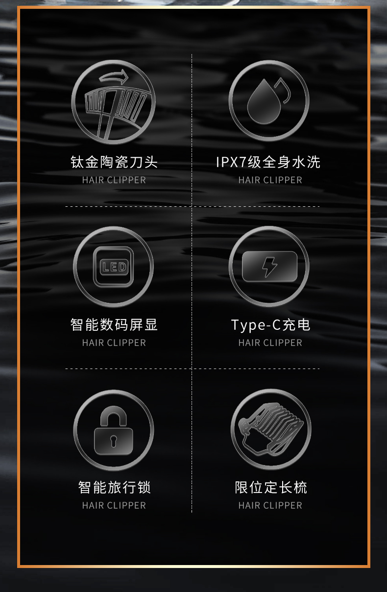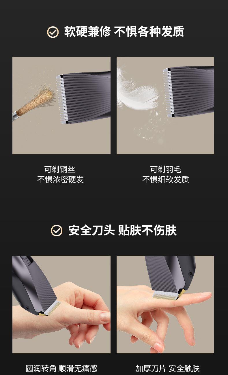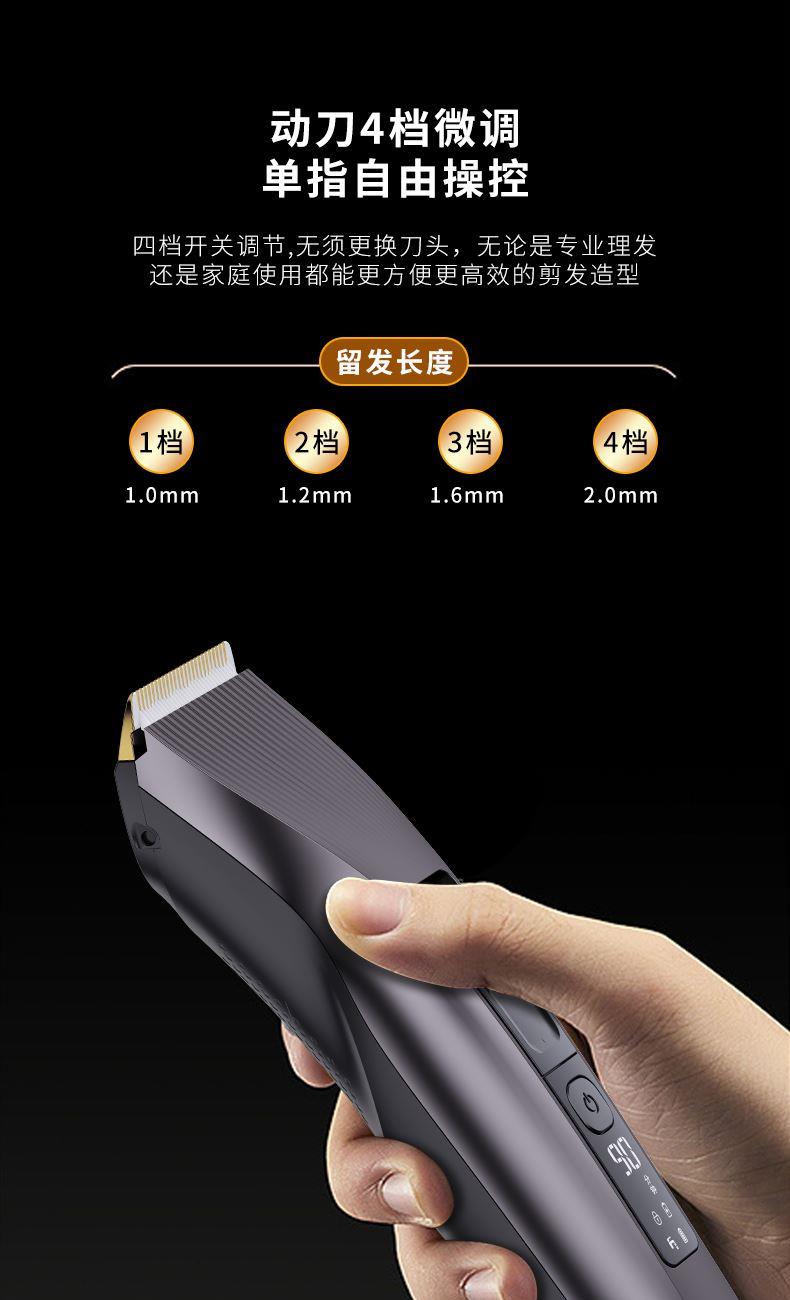 钛金陶瓷刀头,配置4个限位梳,动刀调节设计