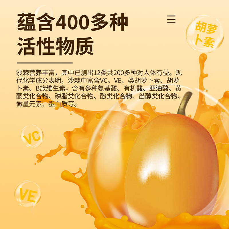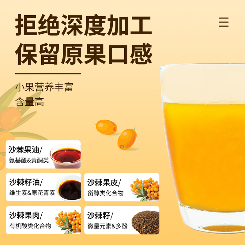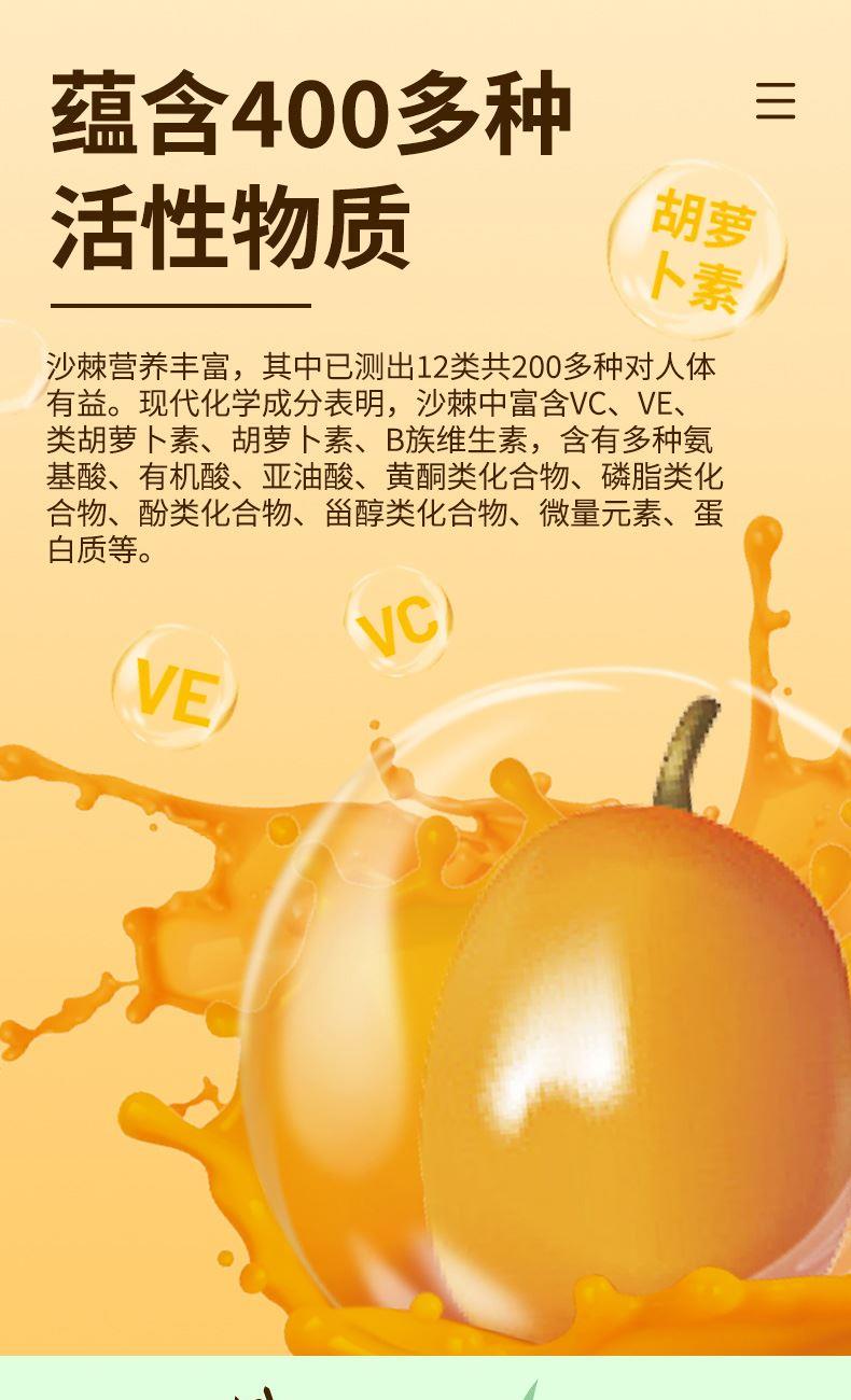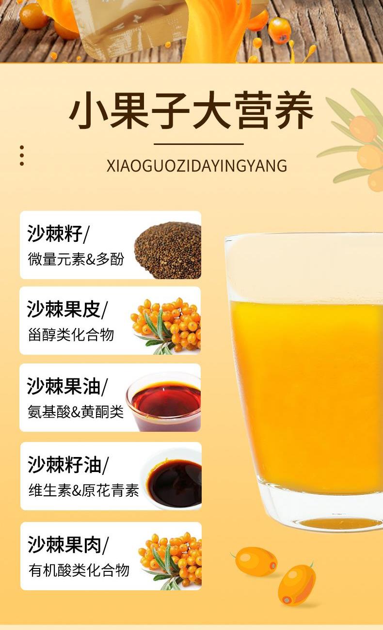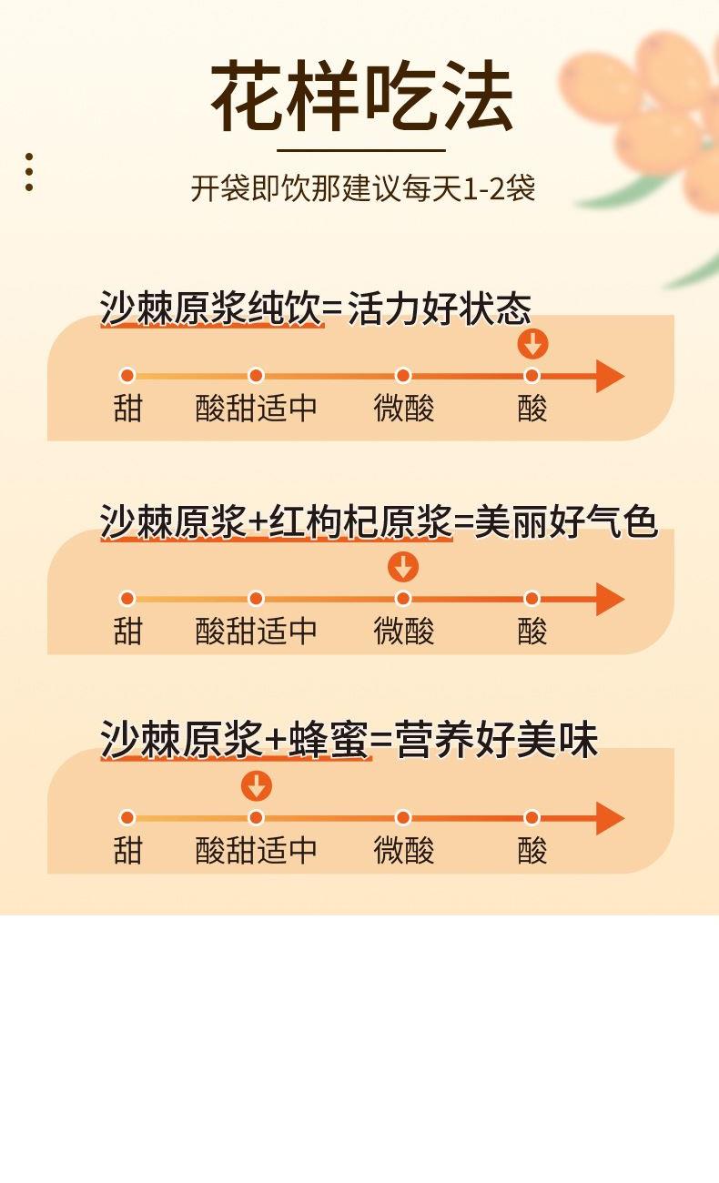 【 配 料 】 有机沙棘原浆 【 产 地 】 宁夏·中宁 【 保 质 期 】 12个 月 【 规 格 】30ml*10袋/盒 沙棘被誉为VC、黄酮、果蔬之冠,沙棘营养丰富,蕴含400多种活性物质,沙棘中的维C含量是猕猴桃的8倍,西红柿的80倍,杞果小圣有机沙棘原浆,鲜果冷榨,NFC工艺压榨,营养更加全面,有机认证。 建议食用方法: 红枸杞原浆+沙棘原浆,沙棘原浆+蜂蜜