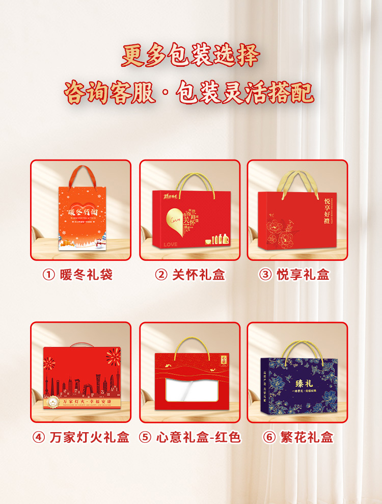 礼袋尺寸:20*27*10cm 包装尺寸:66* 45*51 CM 产品配置:(香型随机) 保暖手套——五指触屏 保暖加绒围脖 云羔绒保暖口罩——澳绒透气 保暖耳罩——可折叠 李时珍蒸汽眼罩——5片/盒 泷御堂大麦茶——240g罐装 海氏海诺手部润护膏30g 海氏海诺凡士林润护膏100ml 海氏海诺凡士林防裂棒40ml 精美礼袋