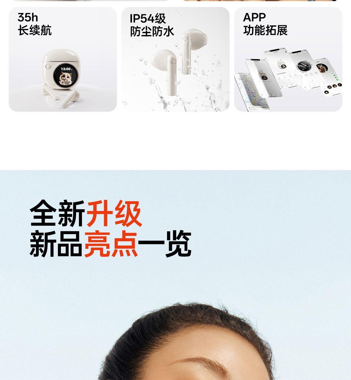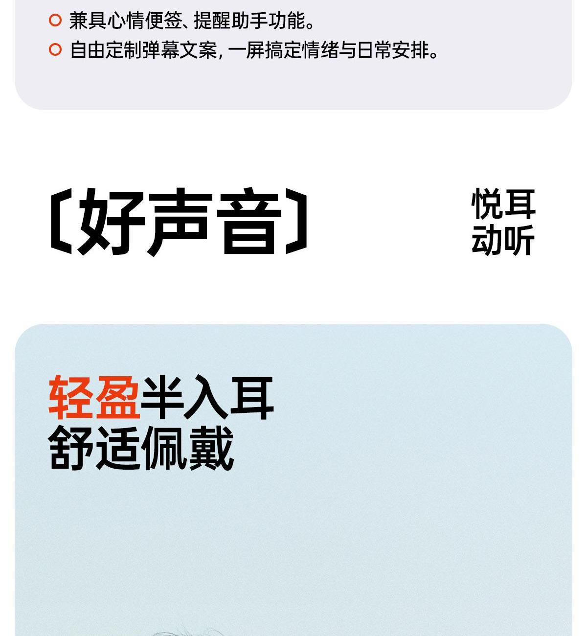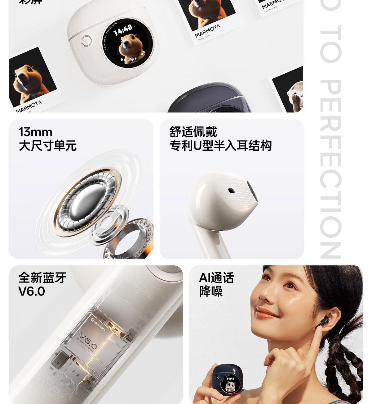 玩转彩屏 13mm大尺寸单元 AI通话降噪 U型半入耳结构 IP54级防尘防水
