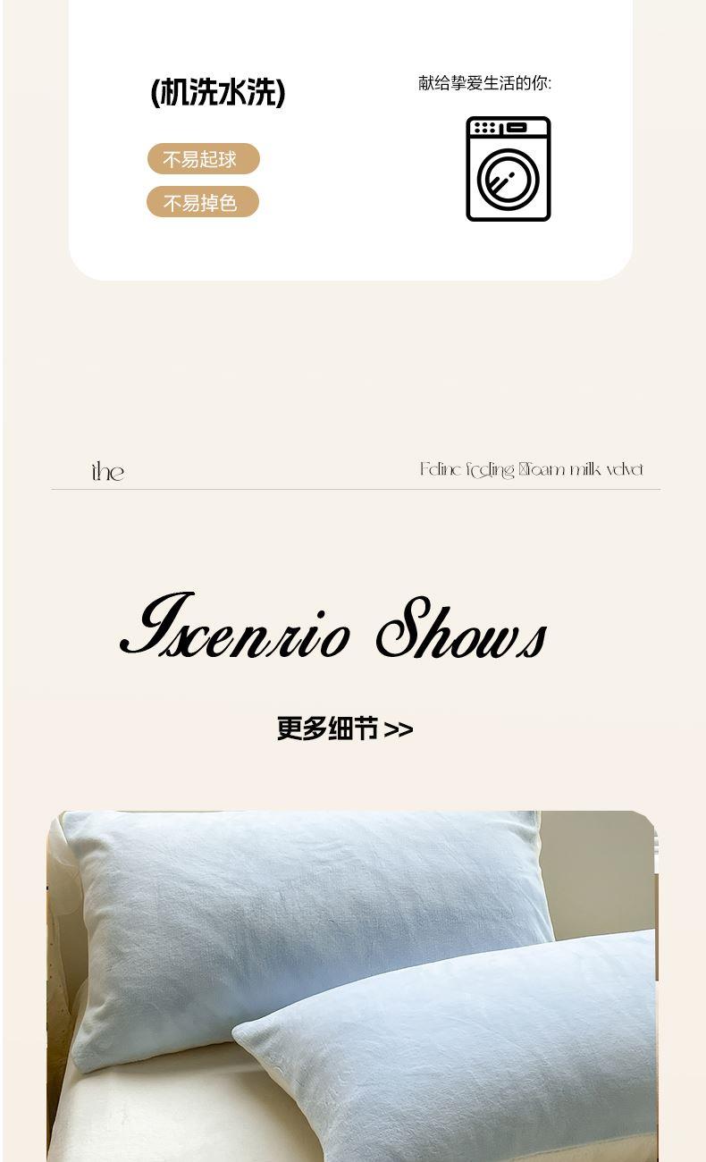 百丽安娜纯色牛奶绒四件套-浅蓝+奶黄