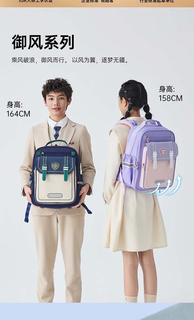 货号:CX2792 主体面料:织物+合成革;里料:织物 颜色: 新薰衣草紫 定位: 135CM以上/小学高年级功能书包 净重:0.92kg 20L