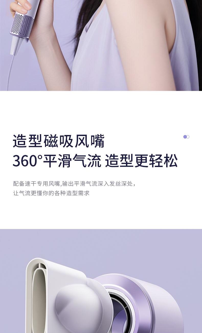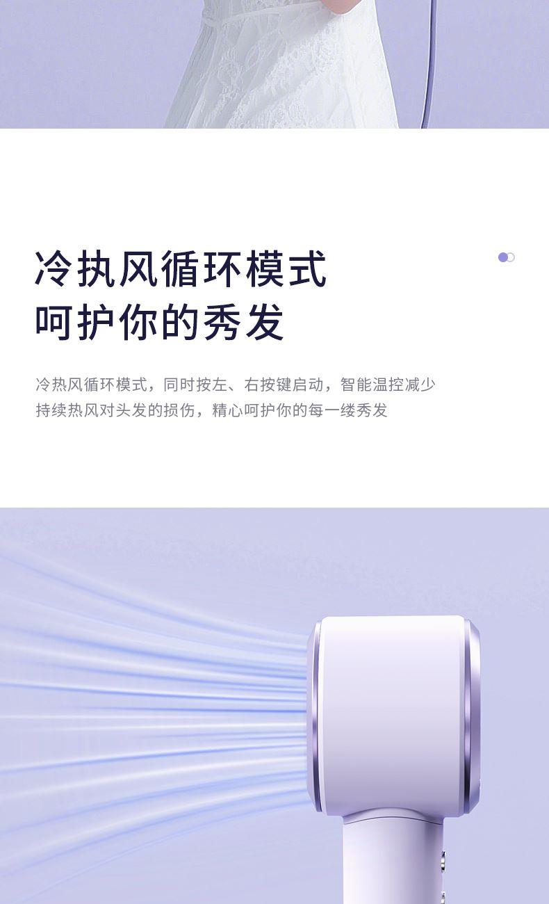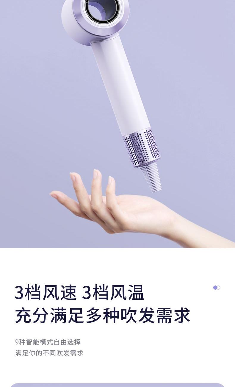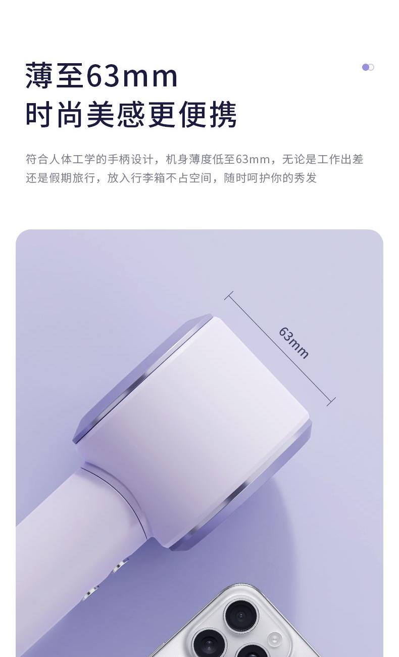 产品型号:G5-3 输入电压:220V 额定功率:1400W 电机转数:11万转 负离子量: 2亿 产品尺寸:280*75*63mm 礼盒尺寸:350*150*95mm 单台毛重:1.1kg 1、高效吹干 轻巧便携 多重降噪 2、配置11万转/分钟的自研高速电机,能够高效快速 3、吹干头发的同时不易打结,早晚洗发无负担 4、自研高速电机的强劲风速,将温风快速送至每一缕发丝 5、2亿+级负离子科技护发 柔顺到底 6、小巧的机身设计,单手轻松掌控 360度多角度吹发不手酸