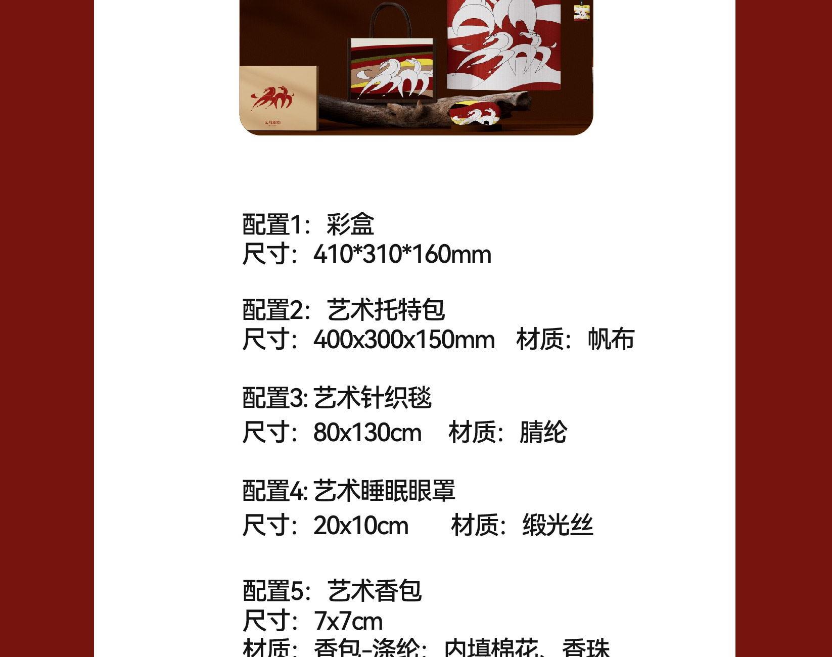 礼盒配置 艺术牛皮纸盒x1、长青兔·艺术托特包x1 长青兔·艺术针织毯x1、长青兔·艺术睡眠眼罩x1 长青兔·艺术香包x1、贺卡x1