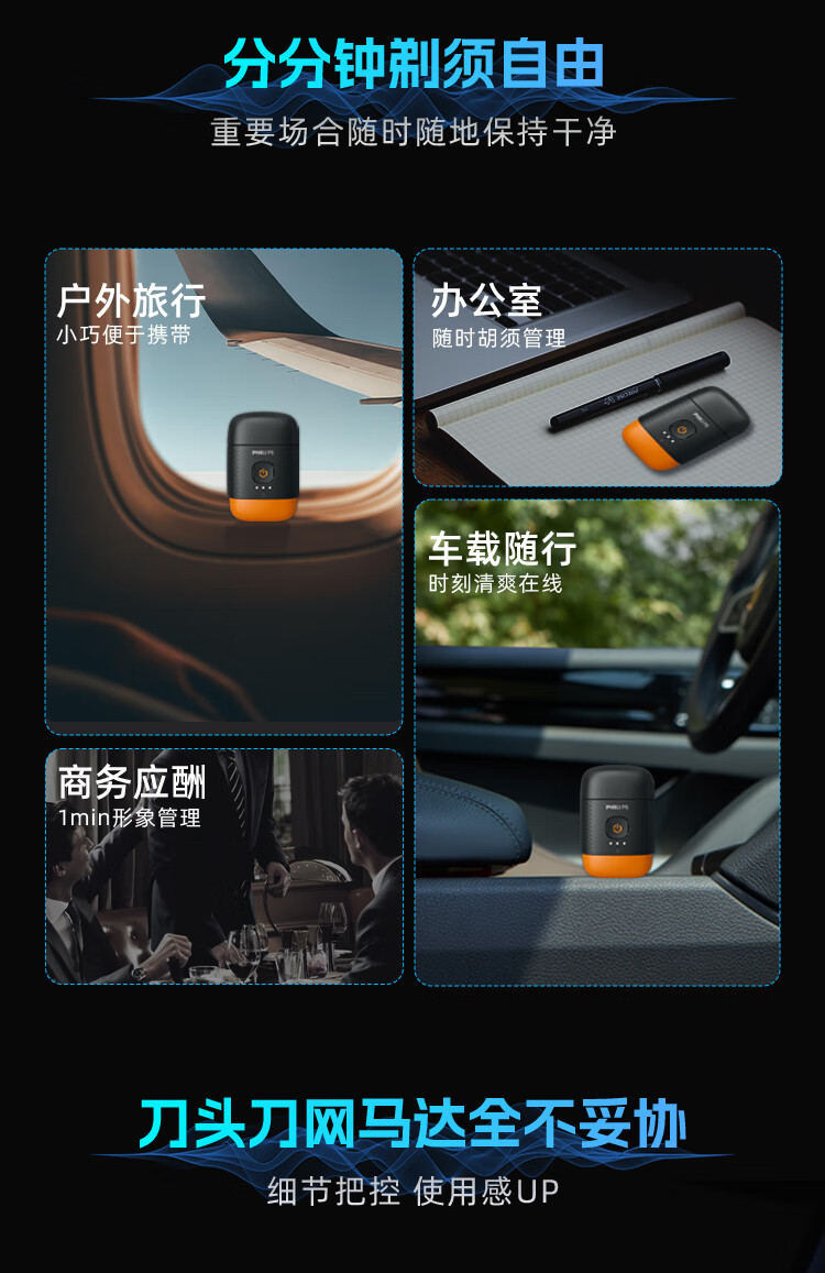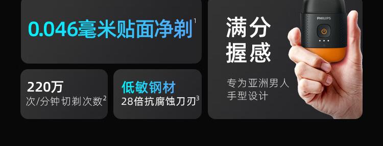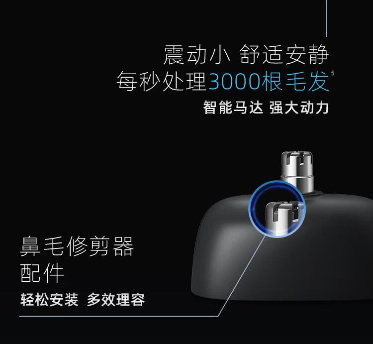 • 欧洲进口钢材 3D浮动刀头 提拉切剃系统将须发从根部轻柔提拉再切剃• 刀片每分钟高达3,000,000次切剃 40天续航,陪伴更持久 • IPX7 防水功能让您可以在自来水下轻松地清洁剃须刀 • 随身携带的 2 合 1 理容套装,鼻毛修剪器,让你体验剃须刀的多功能性。满足您的出行需求 • 1小时充满电 ,5分钟快速充电