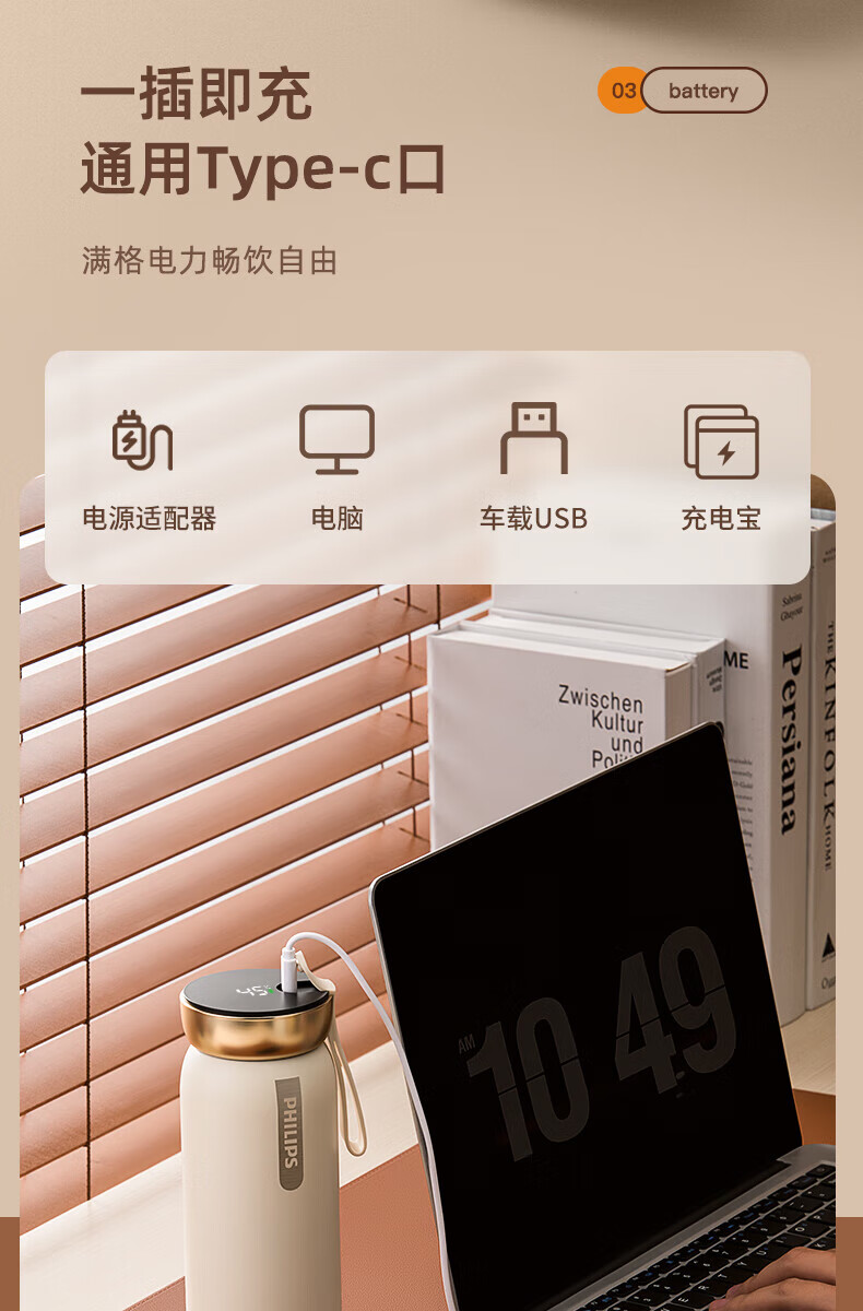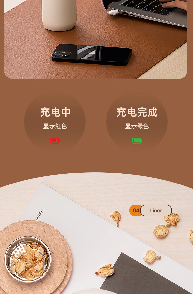 不含双酚 A 智能充电提醒,红色电池图标提醒充电,绿色电池图标表示充满电