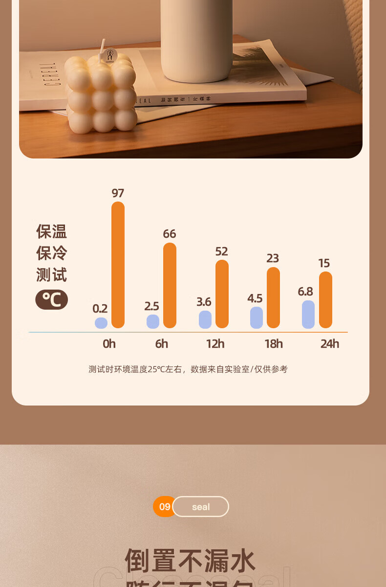 采用双层不锈钢抽真空保温技术,长达 12 小时保温保冷。