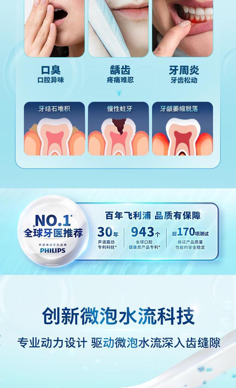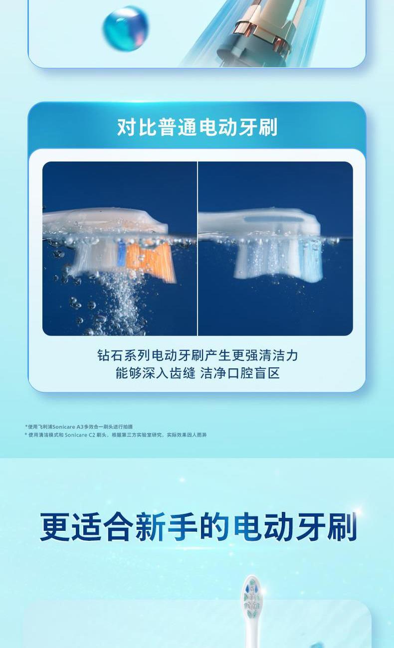 • 飞利浦 Sonicare 先进的声波技术 新手模式45度巴氏握持手柄设计