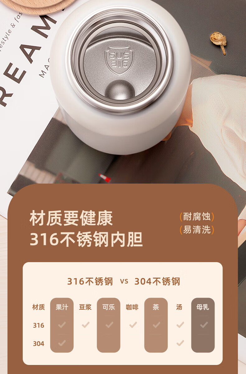 食品级 SUS 316 内胆,使用安全