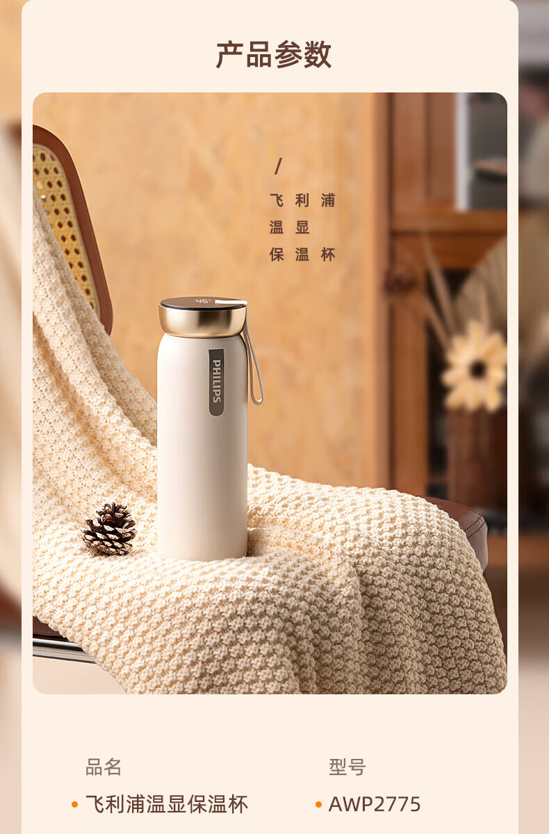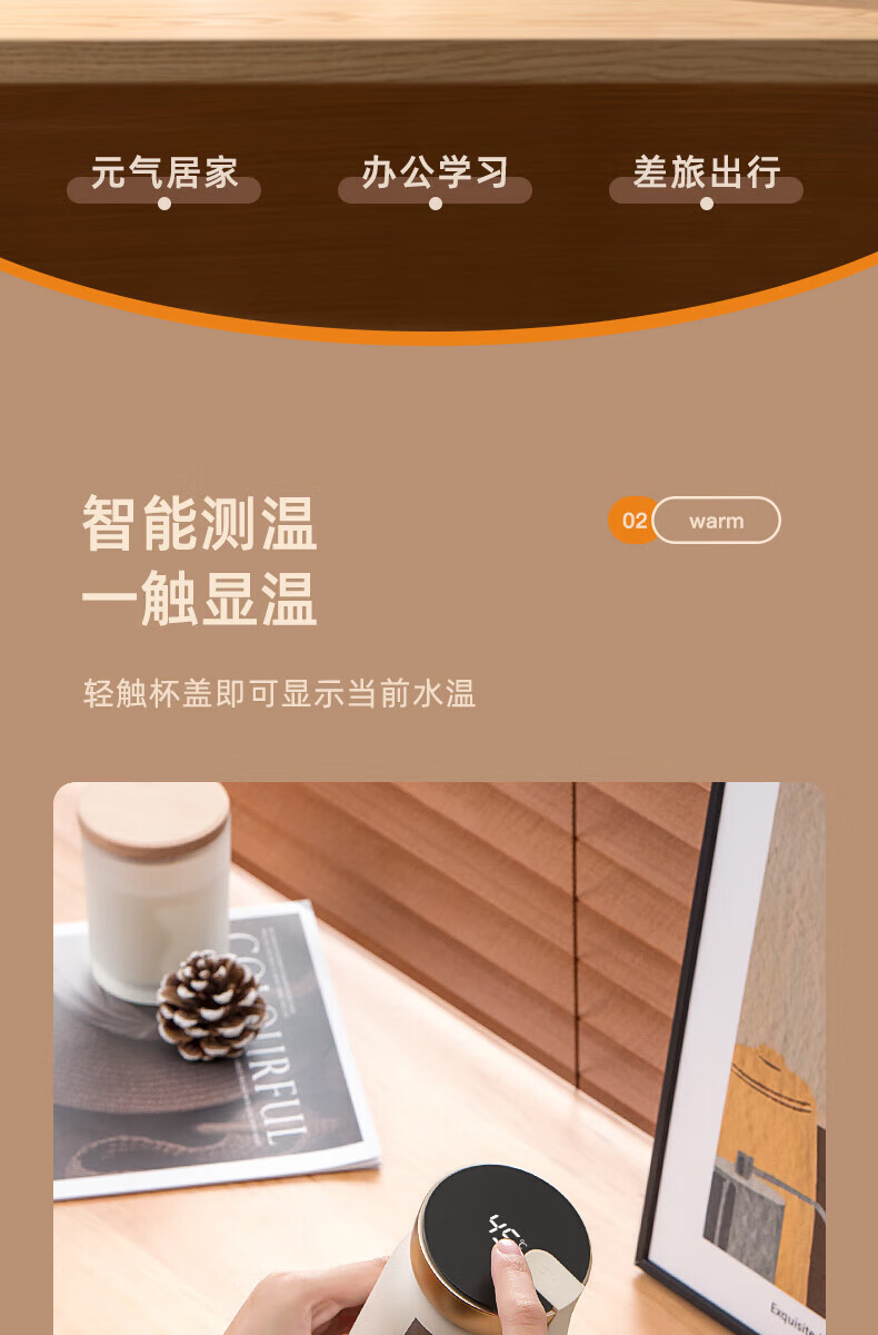 只需按一下杯盖上的数字显示屏,就会显示杯内实时水温。
