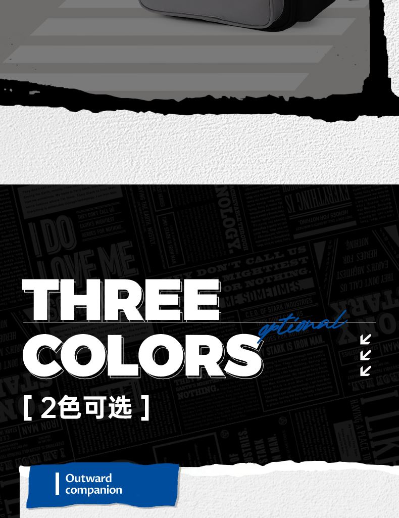 材质:聚酯纤维 尺寸:36*18.5*43.5CM 建议身高:160-175CM 卖点: ①分层大容量设计满足,内部空间大,科学分层便于分类存放和快速找到所需物品 ②科学的背负系统,立体导流背幅承托腰背部肌肉减轻负担透气网格背垫,舒适透气 ③加厚肩带、立体背垫、透气网格、中空导流、防滑胸扣 ④人性化反光条设计,夜晚出行更安全放心 ⑤独特的材料拼接设计赋予它一种沉稳、低调而又时尚的气质能够展现使用者的个性和品味