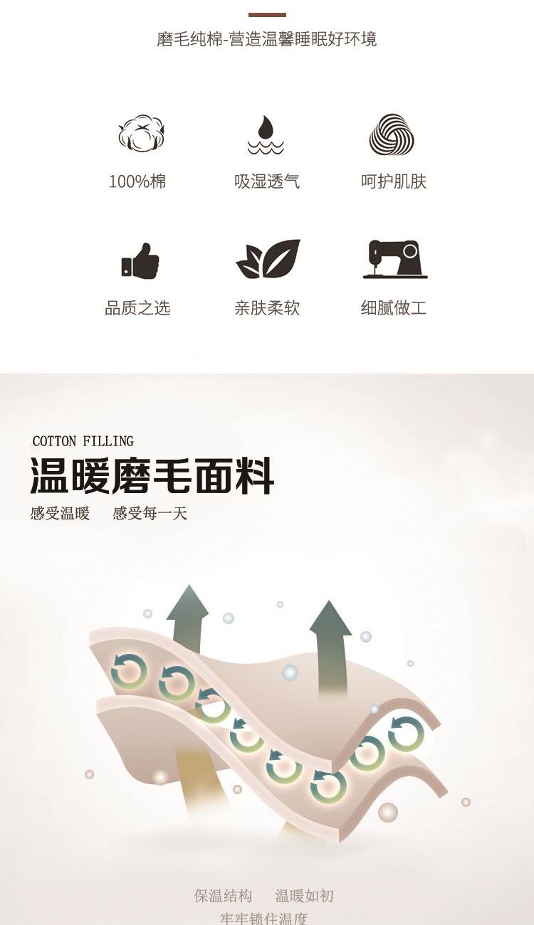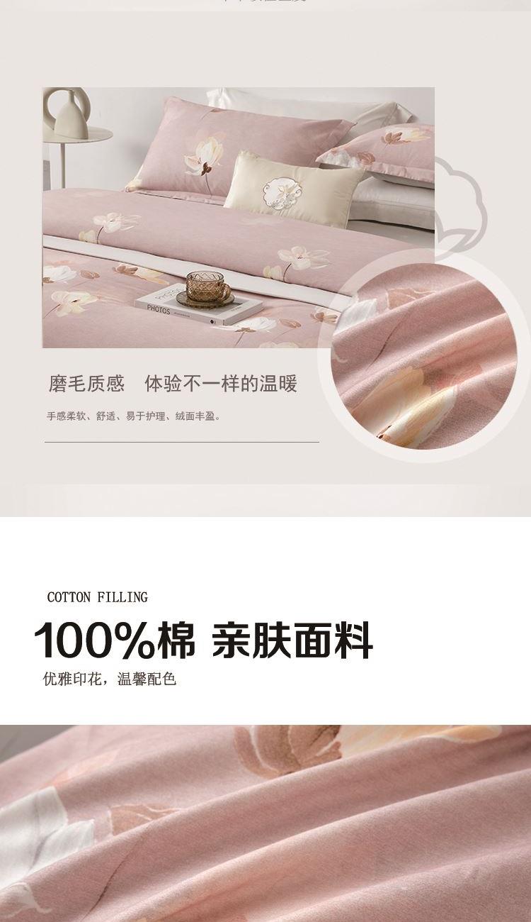 产品规格:1.8m(6英尺)床: 被套:220*240cm 床单:240*245cm 枕套*2:48*74cm 产品材质:棉 1、选用棉,优质印染工艺,手感细腻,AB面体验,保暖升级,无惧冬日严寒。 2、二次高柔磨毛工艺,保暖舒适不易压身,增加全棉面料的保暖性和舒适性,锁住热量,持久续暖。
