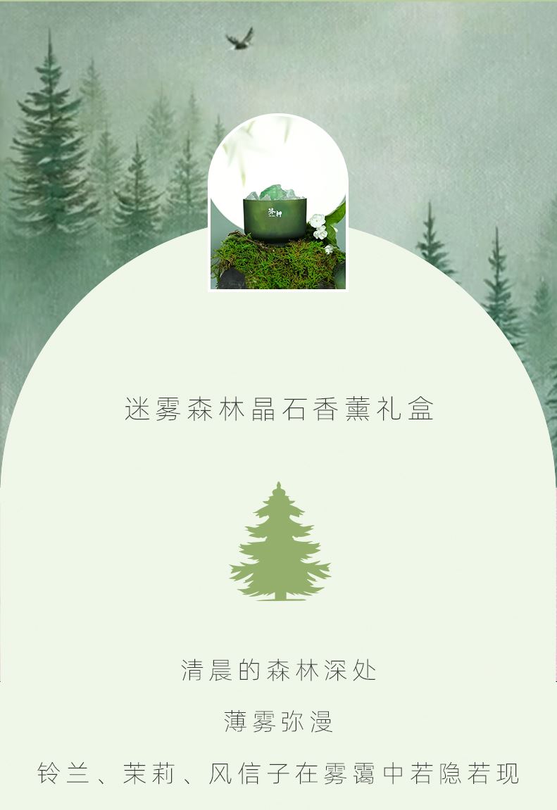 香味:雨后草地 前调:青竹、罗勒、黑加仑 中调:茉莉、铃兰、风信子 后调:檀香、广藿、愈创木 产品规格:扩香晶石约450g、扩香精油10ml、 玻璃容器10x10cm(外径) 礼盒尺寸:24x16.5x11cm
