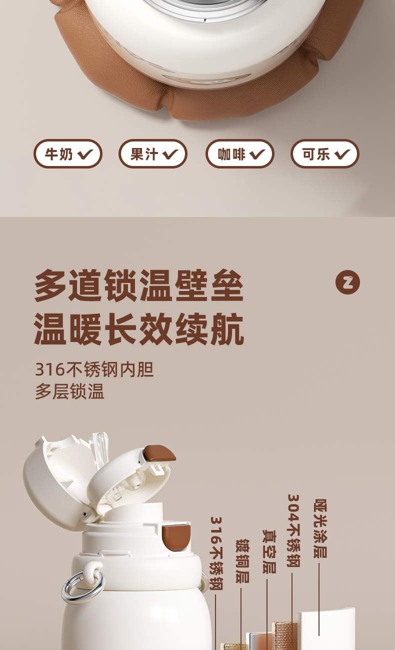 容量:500ml|净重:359g口径:46mm材质:316不锈钢(内胆)304不锈钢(外壳)PP(杯盖)产品尺寸:80mm*80mm*201mm