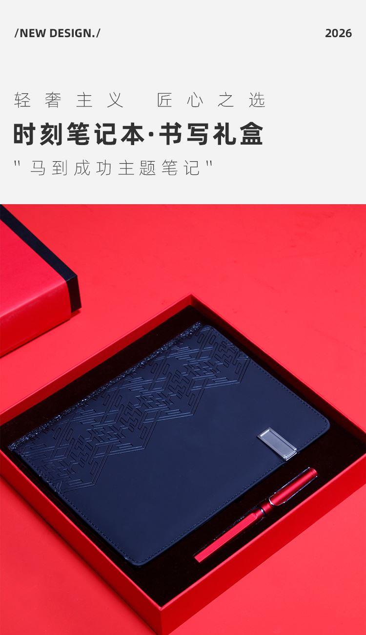 青锦2026【时刻笔记】商务活页记事本0.5mm签字笔礼盒