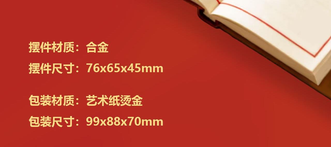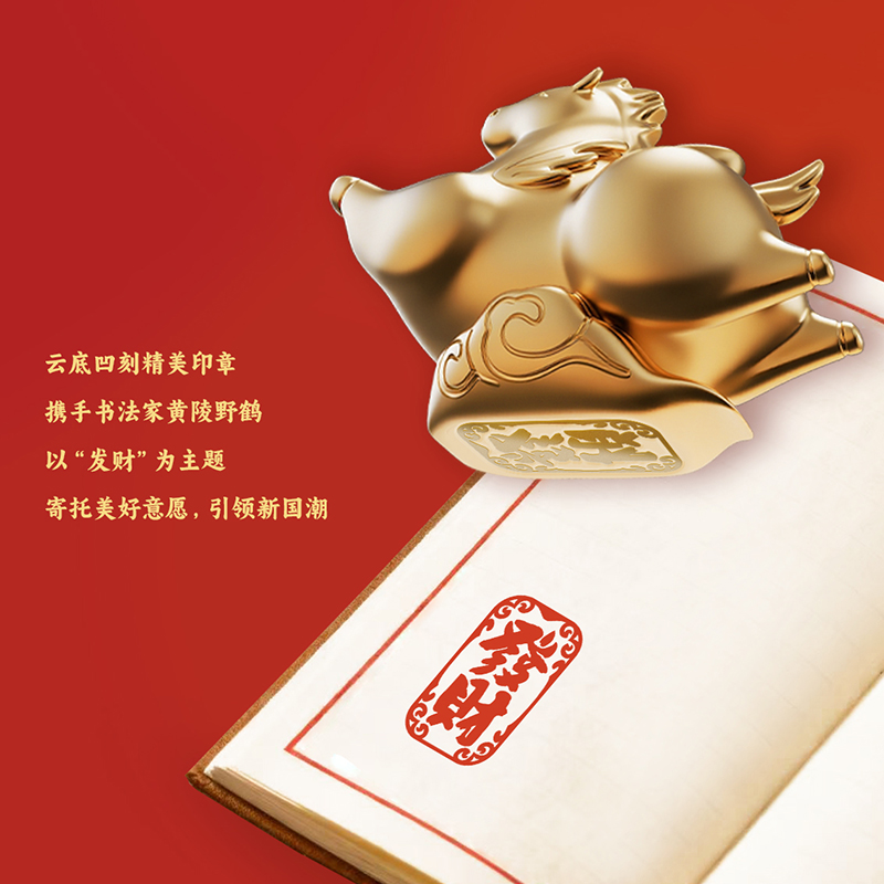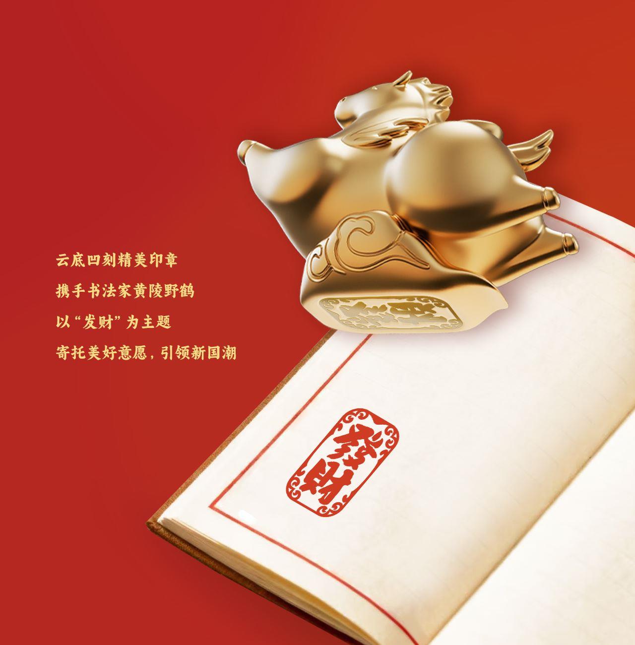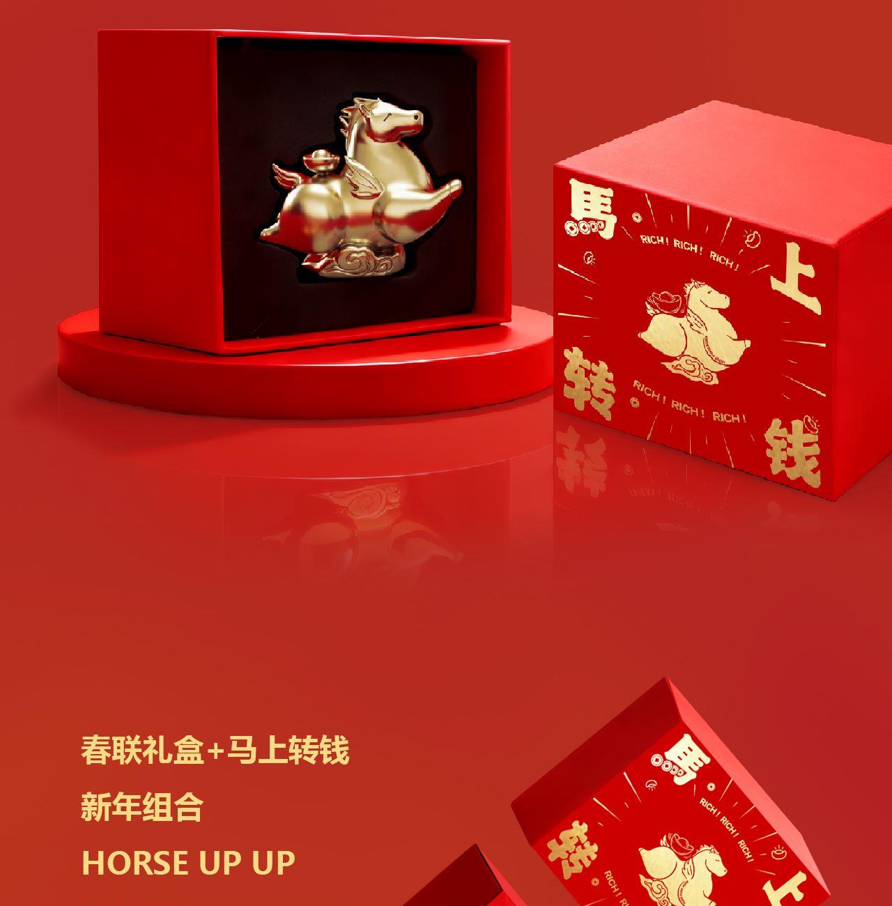 以腾云飞翔的翼马造型为设计元素 是中国传统文化中的祥瑞 寓意着一飞冲天的美好愿望 “翼”马当“钱”,青云直上 内置进口轴承 马背上的元宝可以顺畅转动 预示马上“转”钱,富贵将至 云底凹刻精美印章 携手书法家黄陵野鹤 以“发财”为主题 寄托美好意愿,新国潮 金色小马眼神微闭,马蹄微抬 神情充满松弛感 寓意轻松冲上云霄,自由自在 愿您早日抵达财富自由 摆件尺寸: 76x65x45mm 包装尺寸: 99x88x70mm