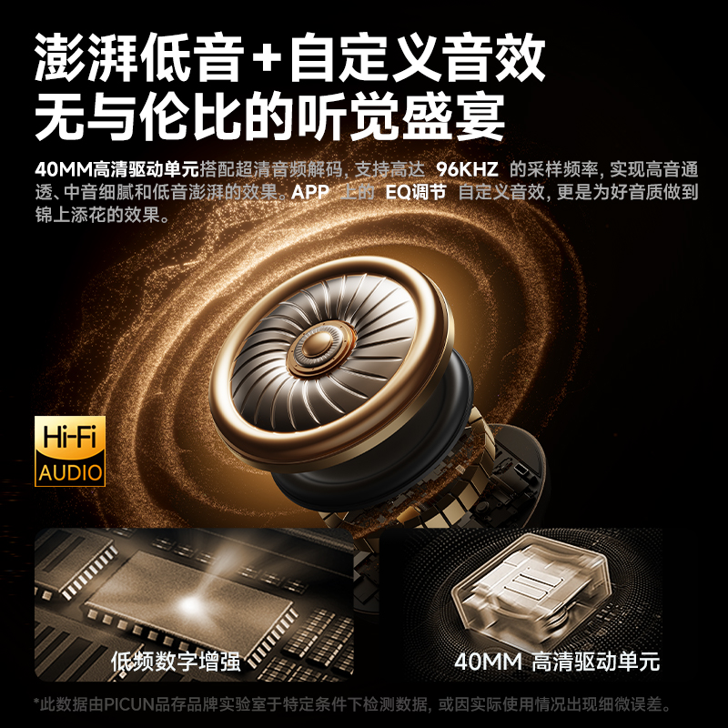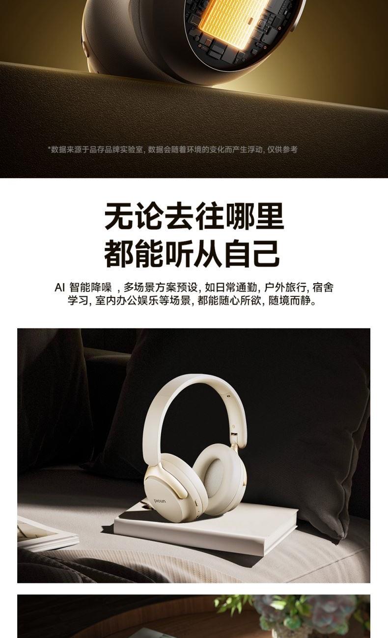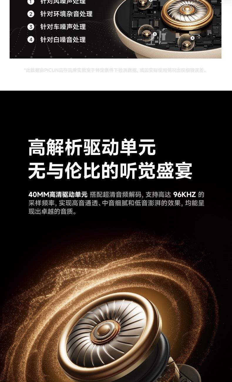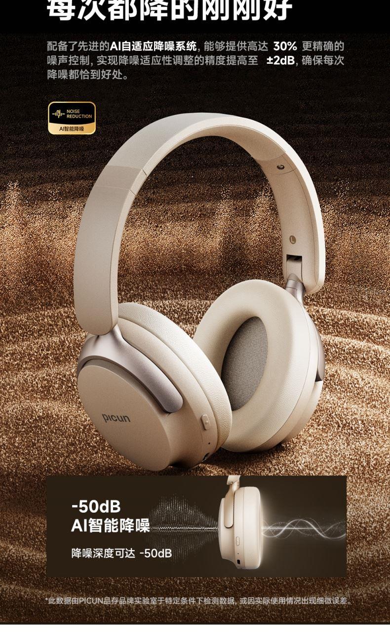颜色:复古棕、日光白、曜石黑 连接模式:插音频线、蓝牙 蓝牙方案:AC7018 降噪深度:-35dB 蓝牙版本:V5.4 接受距离:10m 频响范围:20HZ-20KHZ 使用时间(70%音量): 100小时, 开启降噪80小时 电池容量:1000mAh 充电时间:3H 喇叭尺寸:40mm 喇叭灵敏度:121±3dB 充电接口:type-c 1、支持【picun品存】APP智能互联控制 2、4麦阵列先进混馈降噪技术, 降噪深度达38DB 3、千元HIFI无损音质 大师级调教+自定义音效+空间音频 4、1000毫安大容量电池,可支持100小时续航 5、Pro版本支持头部追踪