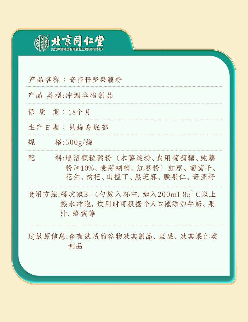 北京同仁堂内廷上用奇亚籽坚果藕粉500g