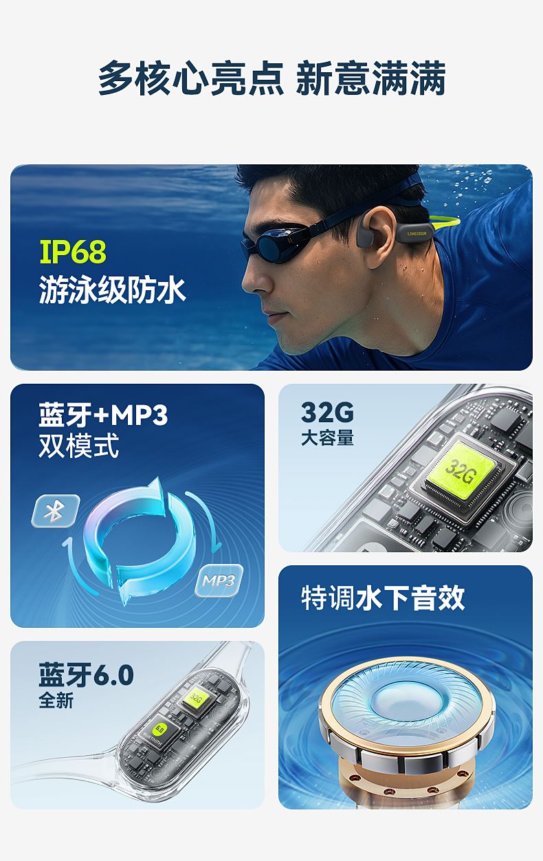 兰士顿水陆双用骨传导蓝牙耳机AirSwimNeoBE23