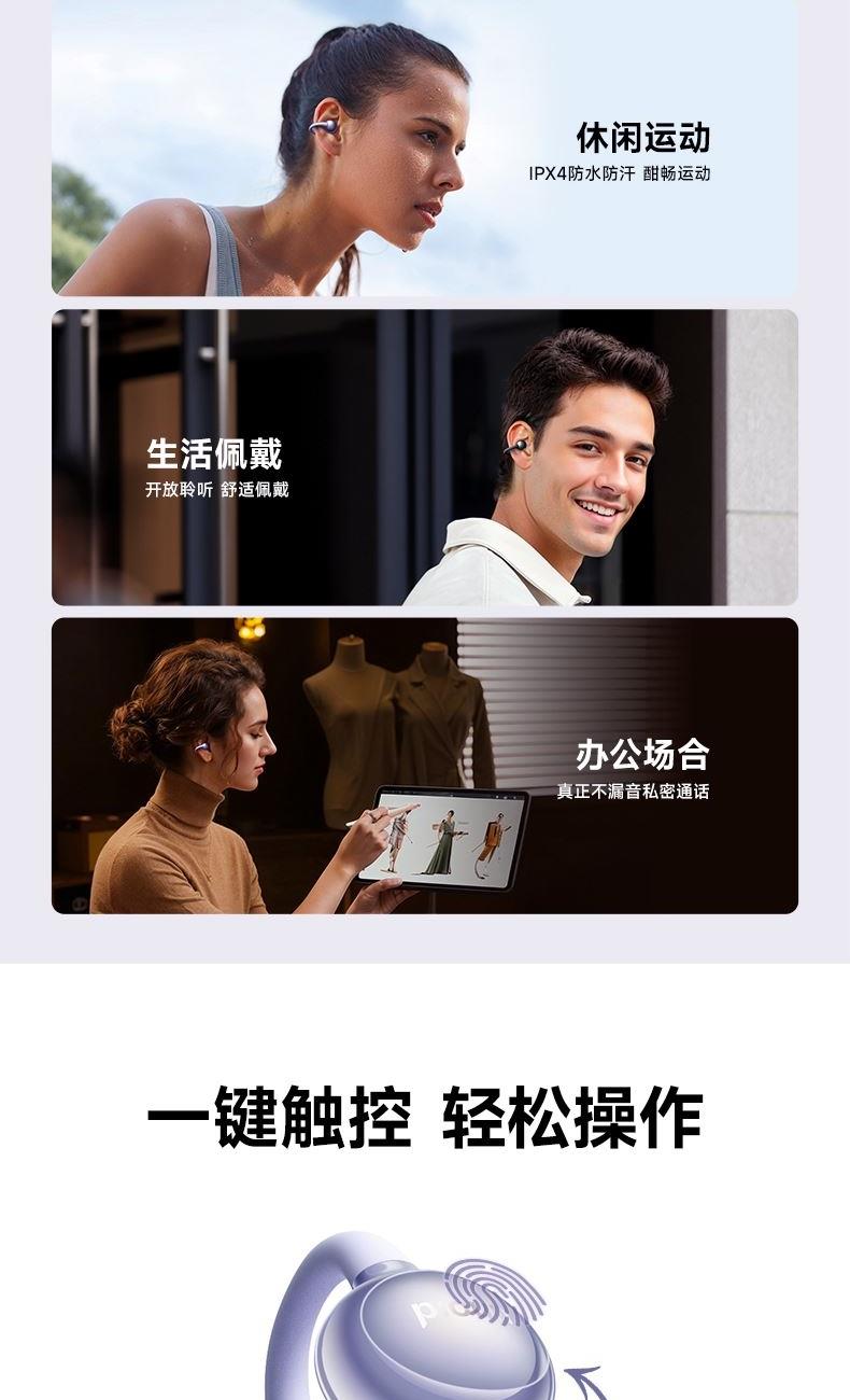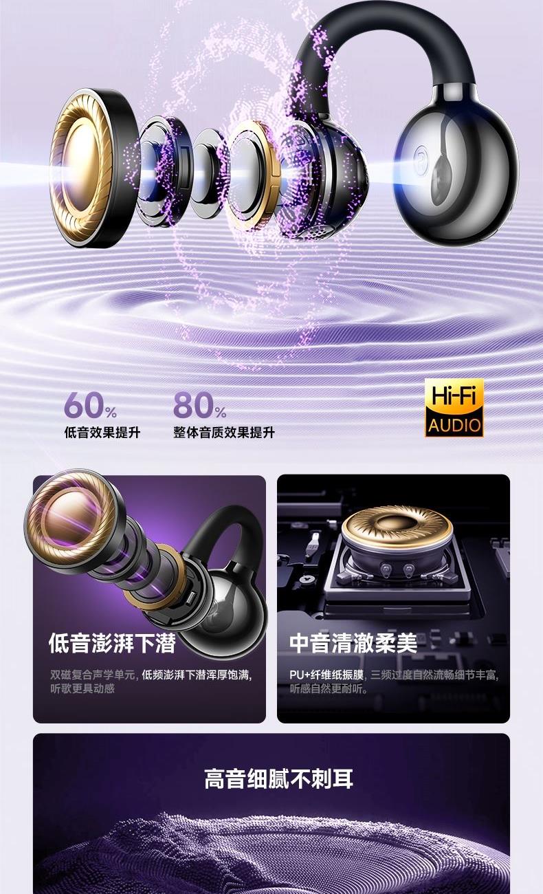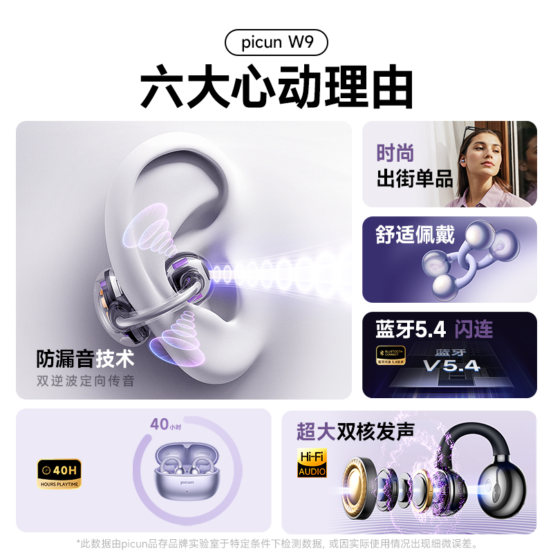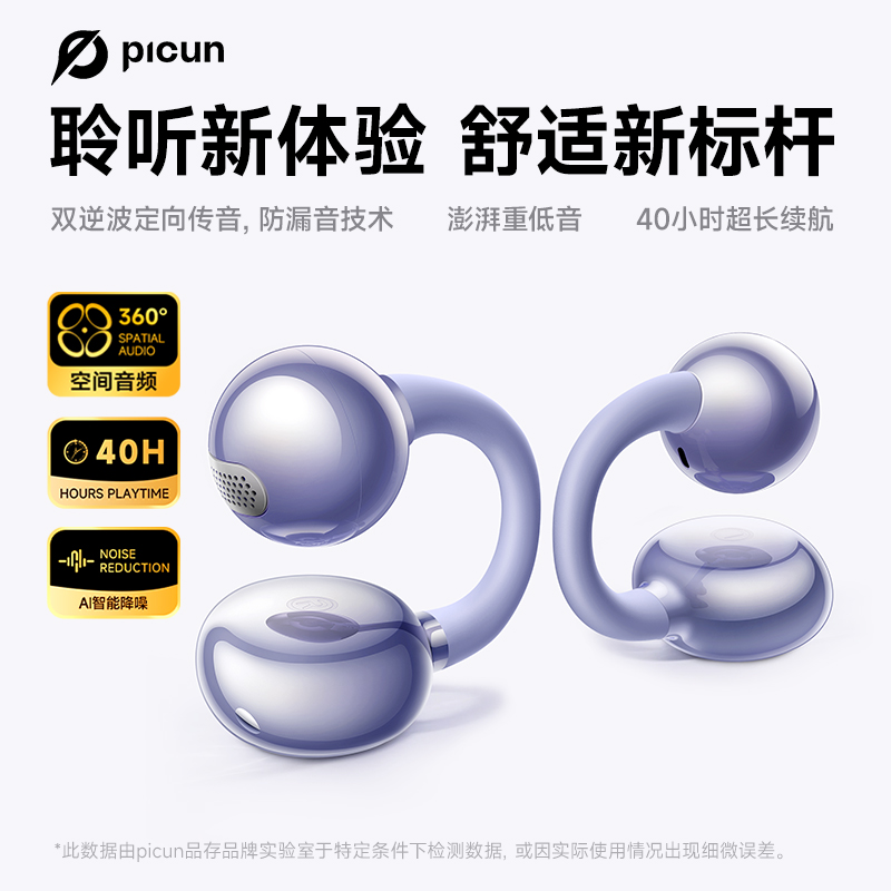 颜色:黑色、紫色 蓝牙方案 : JL7003D 蓝牙版本 : V5.4 接受距离 : 10m 频响范围 : 20HZ- 20KHZ 电池容量 40mA / 400mA 使用时间(70%音量:≈6h 喇叭尺寸 : 12mm 喇叭灵敏度: 120±3db 充电接口: TYPE-C 1、支持【picun品存】APP智能互联控制 2、360度环绕声场 3、智能触控 4、波束传音,不漏音