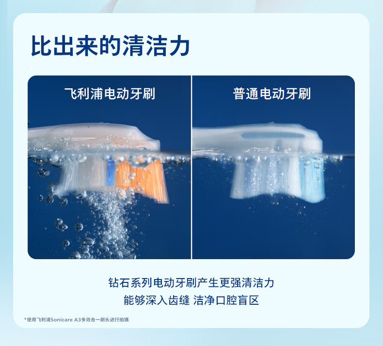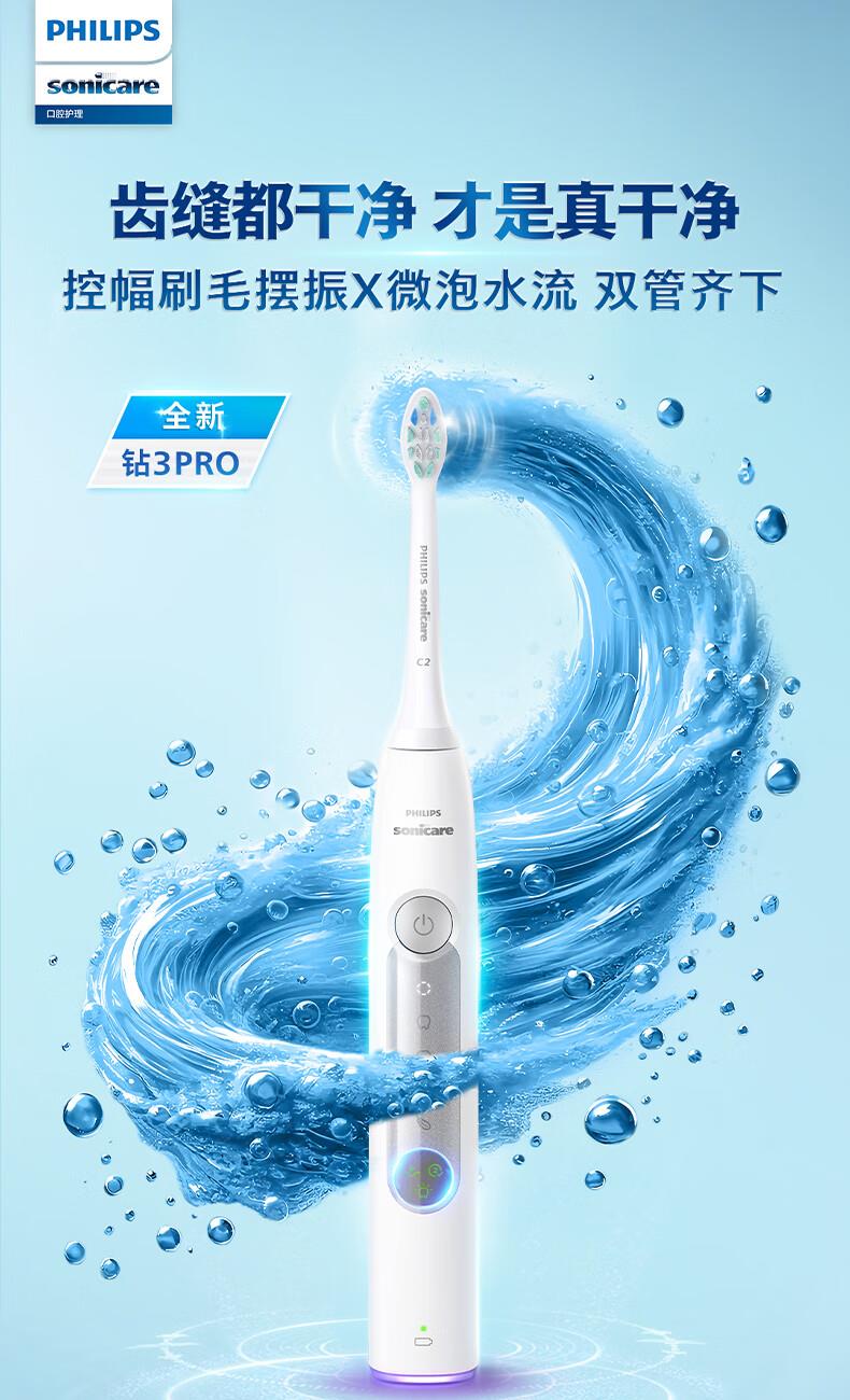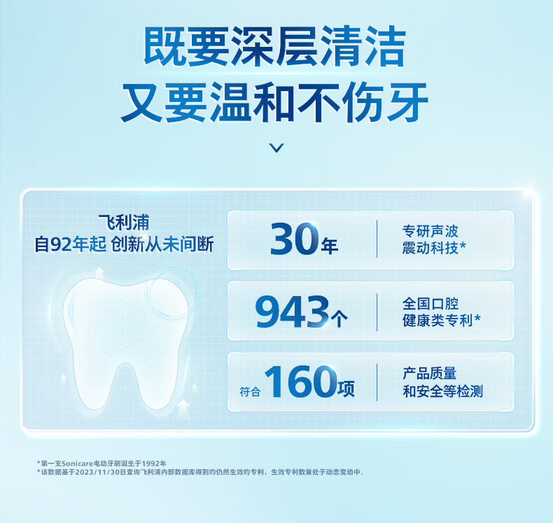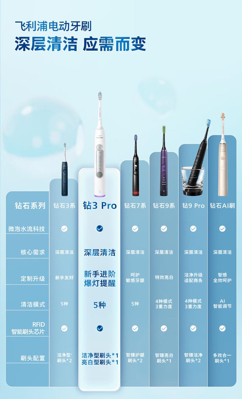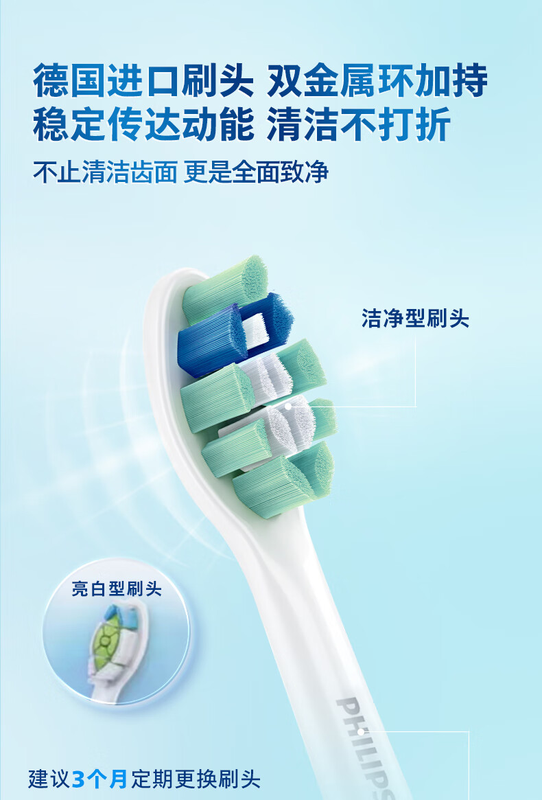全新Powerclean动力系统有效去除5倍牙菌斑 31000次/分钟强劲护龈振频 可视化压感灯环搭配自动降速 无惧力度过猛 刷头标配2支 0.08秒快速降速 控压 不伤牙龈 五大模式清洁,亮白,护龈,专业亮白,抛光适应不同场景需求 2分钟计时提醒30秒换区指引 续航长达60天 无线充电底座 无接触更安心IPX7级防水 无惧冲洗