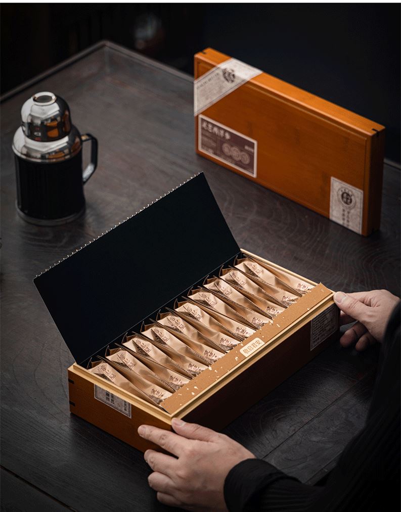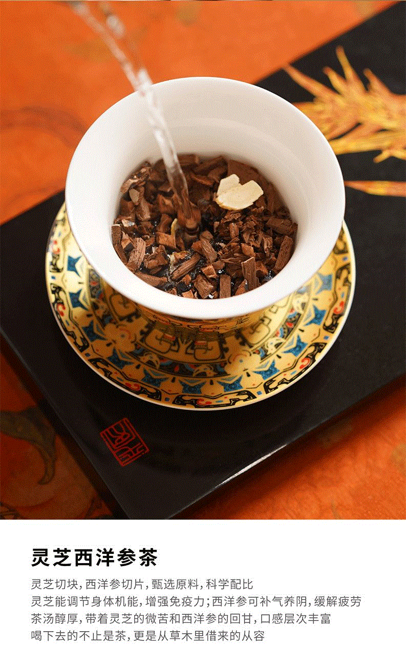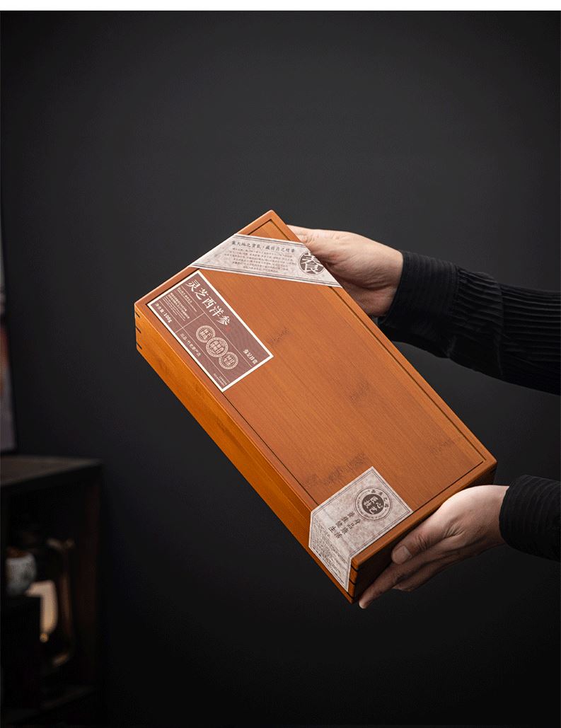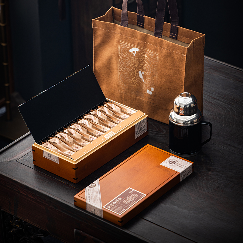 产品尺寸: 竹盒:320*160*93mm 手提袋:335*105*275mm 焖壶:500ml 茶叶总净含量:100g(5gx20泡) 产品配置: 316焖茶壶,灵芝西洋参茶20泡(100g), 楠竹礼盒x1,皮绒手提袋x1