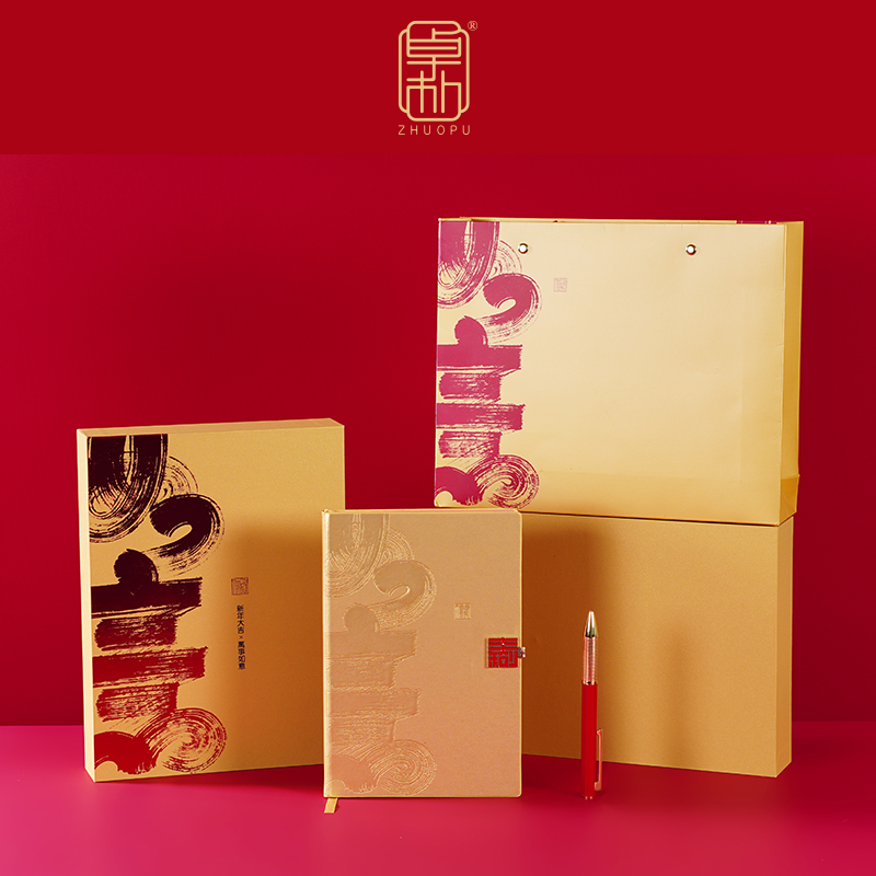 配置:笔记本+笔 材质:珠光金纸+合金+珠光皮 尺寸:笔记本145*210mm 签字笔138*11mm 包装:珠光金礼盒(260*195*50mm)+手提袋