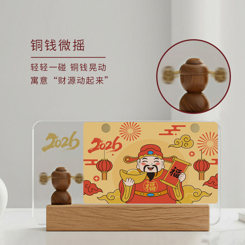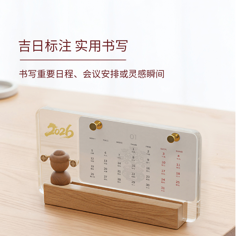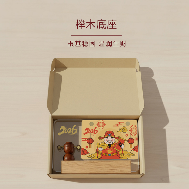 设计师说 撕去一页旧时光,迎来一日新财气。 我们相信,财富在呼吸,随年月生长。 财盈新历, 以时光为壤,以计划为苗, 在365个平凡日子里,耕耘你的富足人生。 静待岁月流转,终见家室充盈。 产品配置:榉木底座1,台历1,财神摆件1