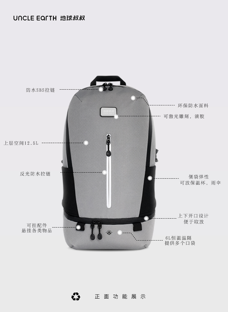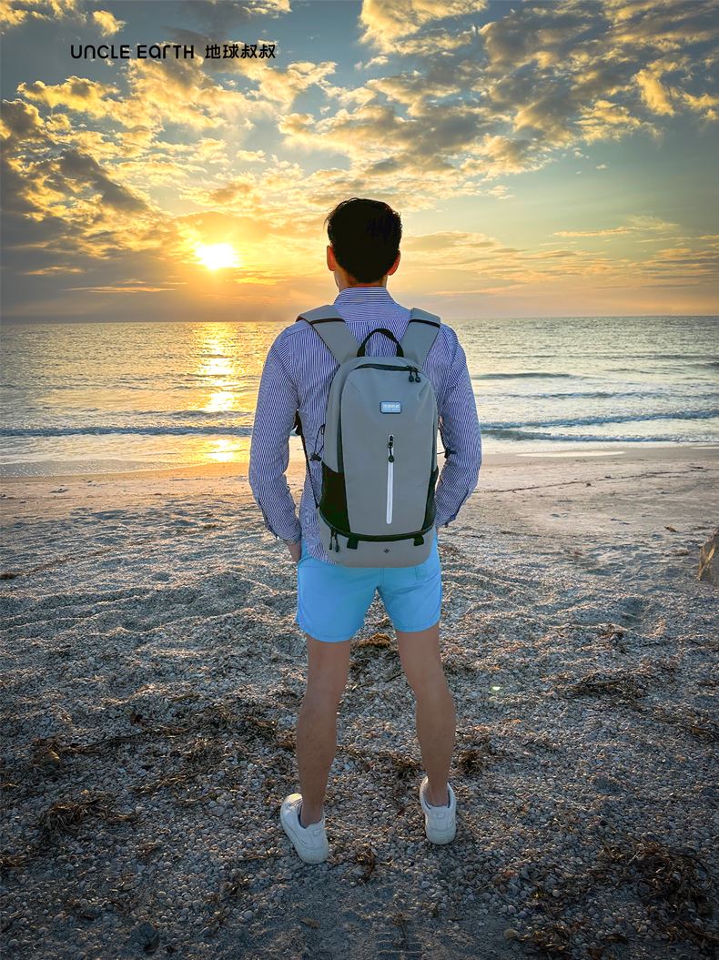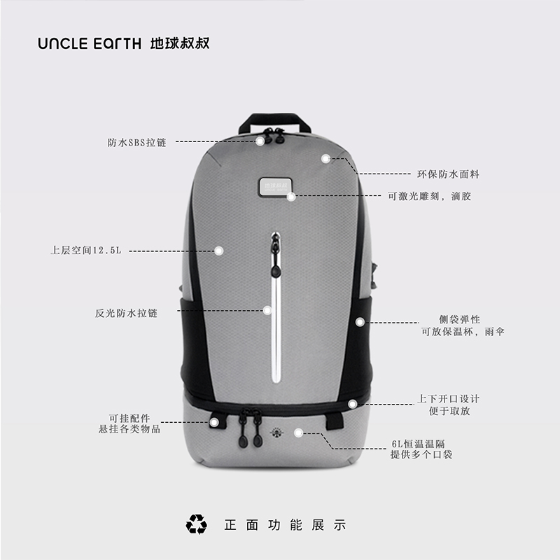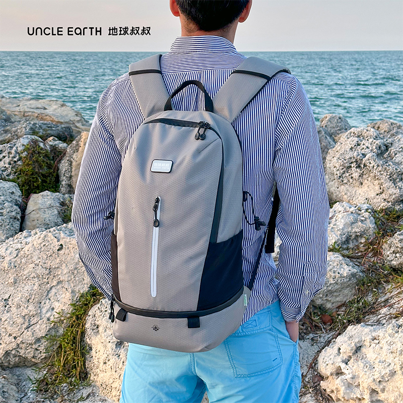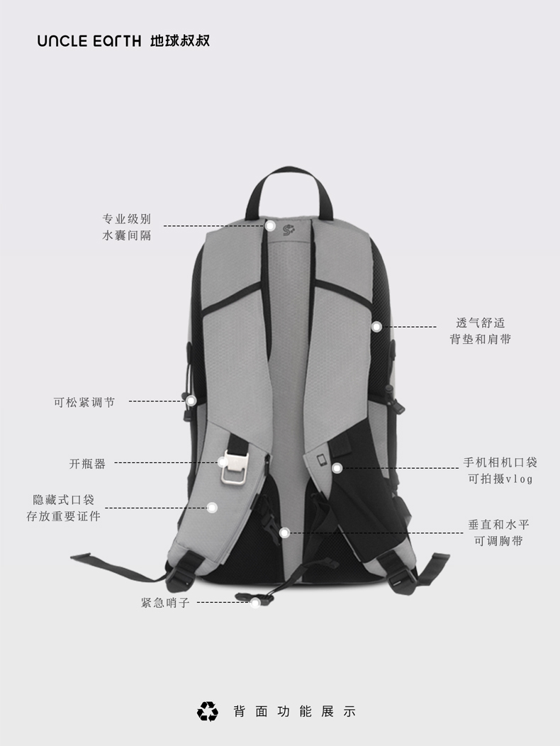 地球叔叔:环保礼品万用背包简约大容量户外旅行登山休闲双肩包