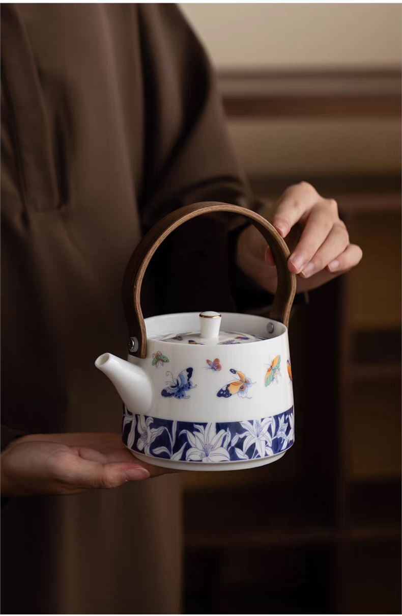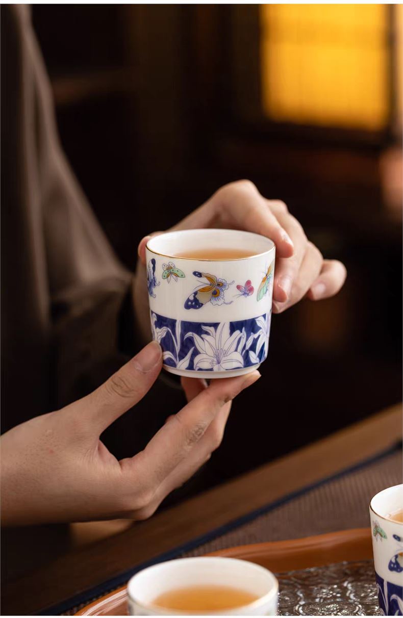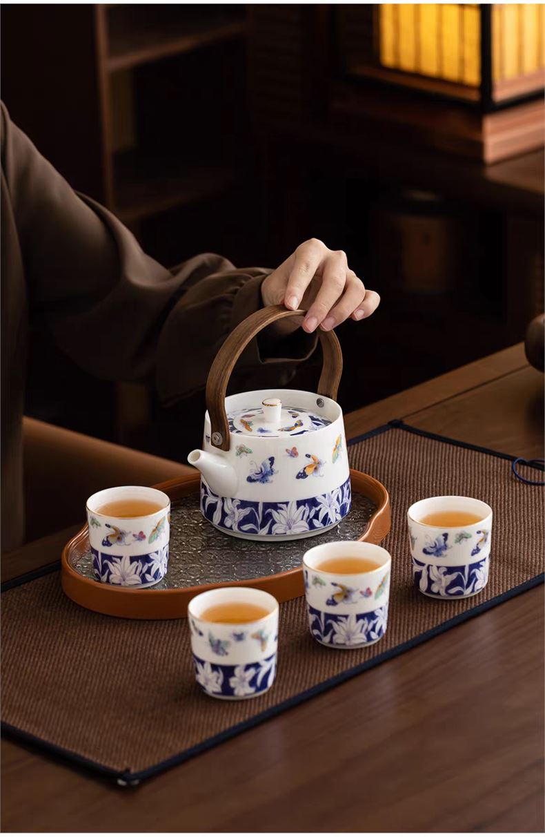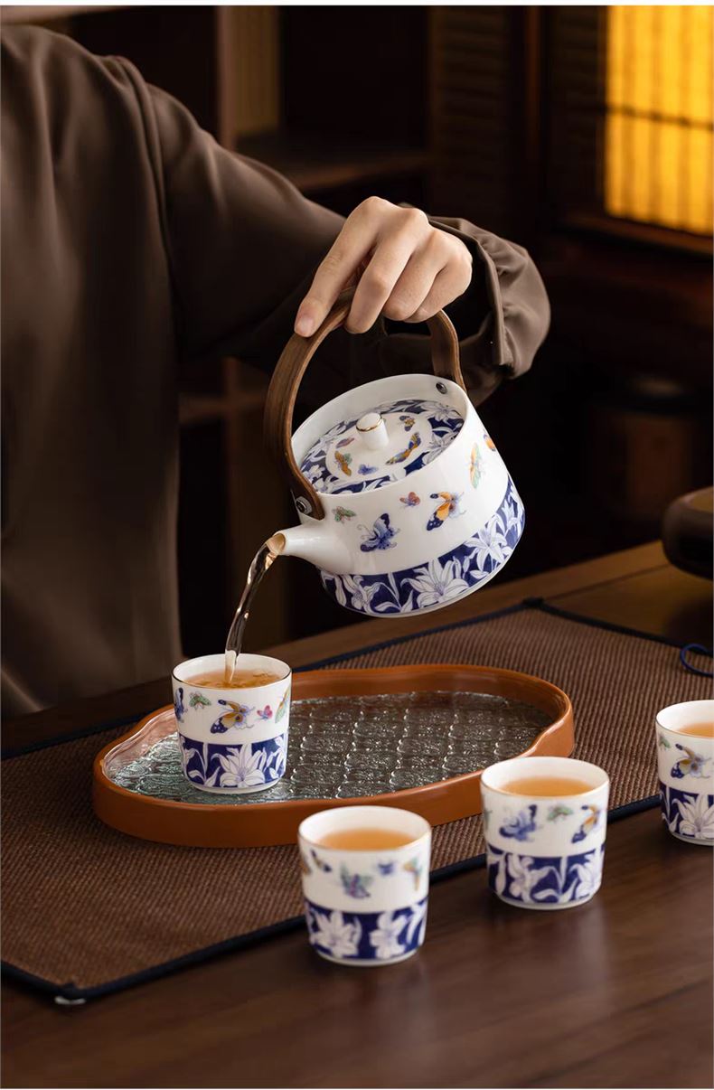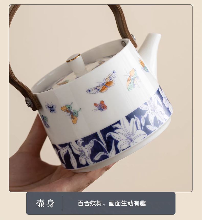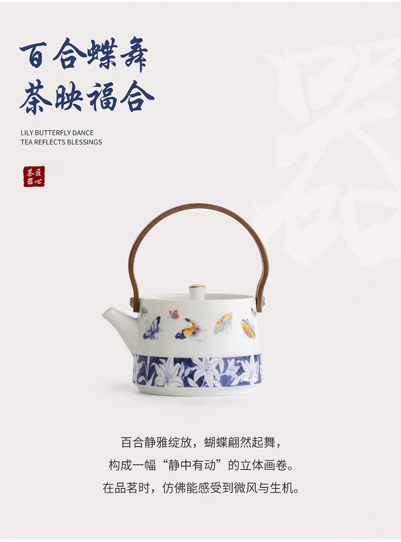 尾桥下窑青花百合蝶舞旅行茶具套装羊脂玉瓷茶具伴手礼年会礼品