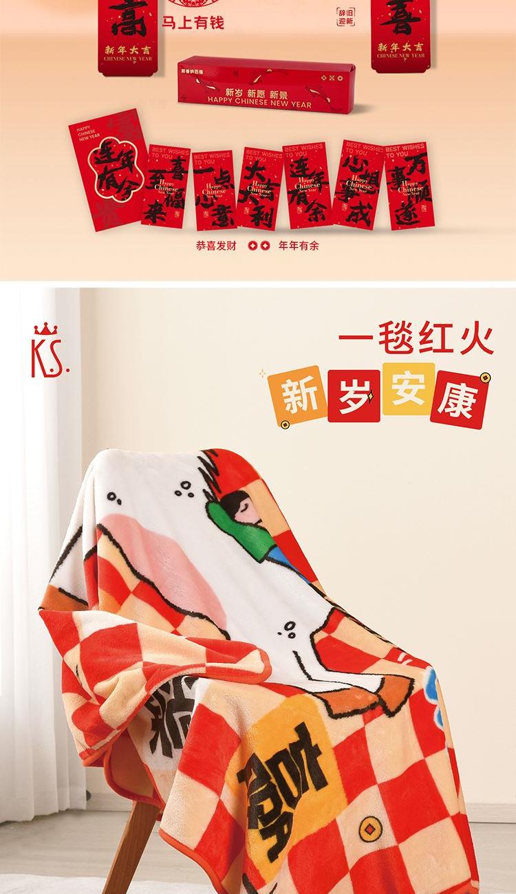 精选传统年味春联、红包、窗花与零食礼盒构成经典组合,并搭配实用好物(钥匙扣、把手保温杯、躺赢毯),支持产品替换,灵活自由。