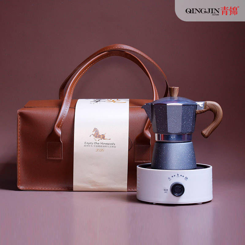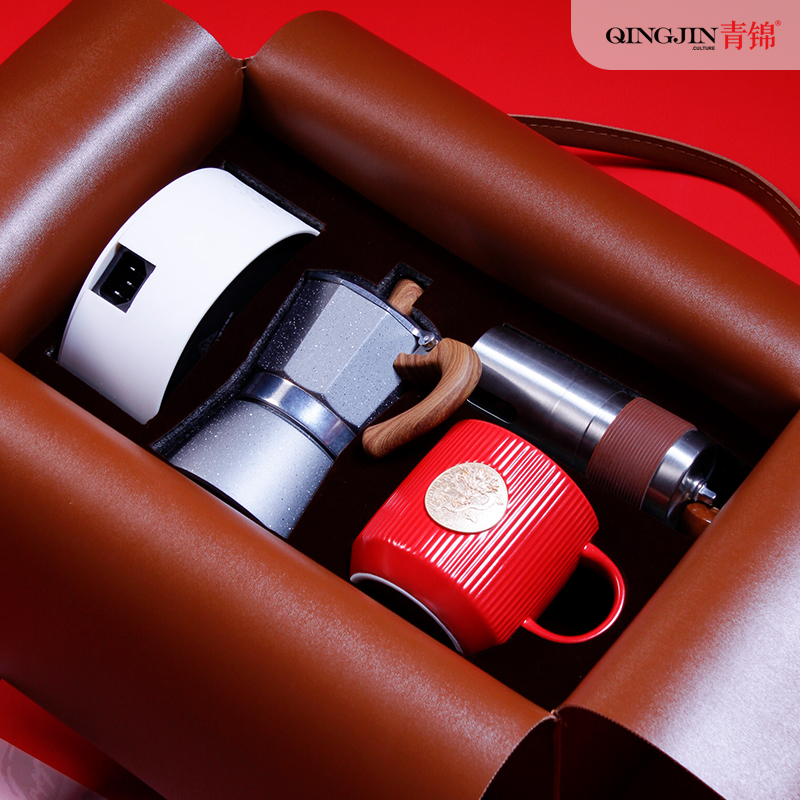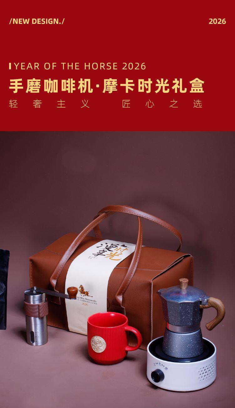 青锦2026【摩卡时光】手磨咖啡机摩卡壶陶瓷杯皮质手提礼包