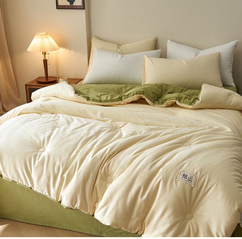 面料:全棉 填充:新疆棉花 规格:200cm*230cm 总重量:3000g 包装:精美软包 里外都是全棉的棉花冬被,吸湿透气手感暖糯,细腻柔软,填充选用优质新疆棉花。高标准,无刺激,适合敏感肌肤。
