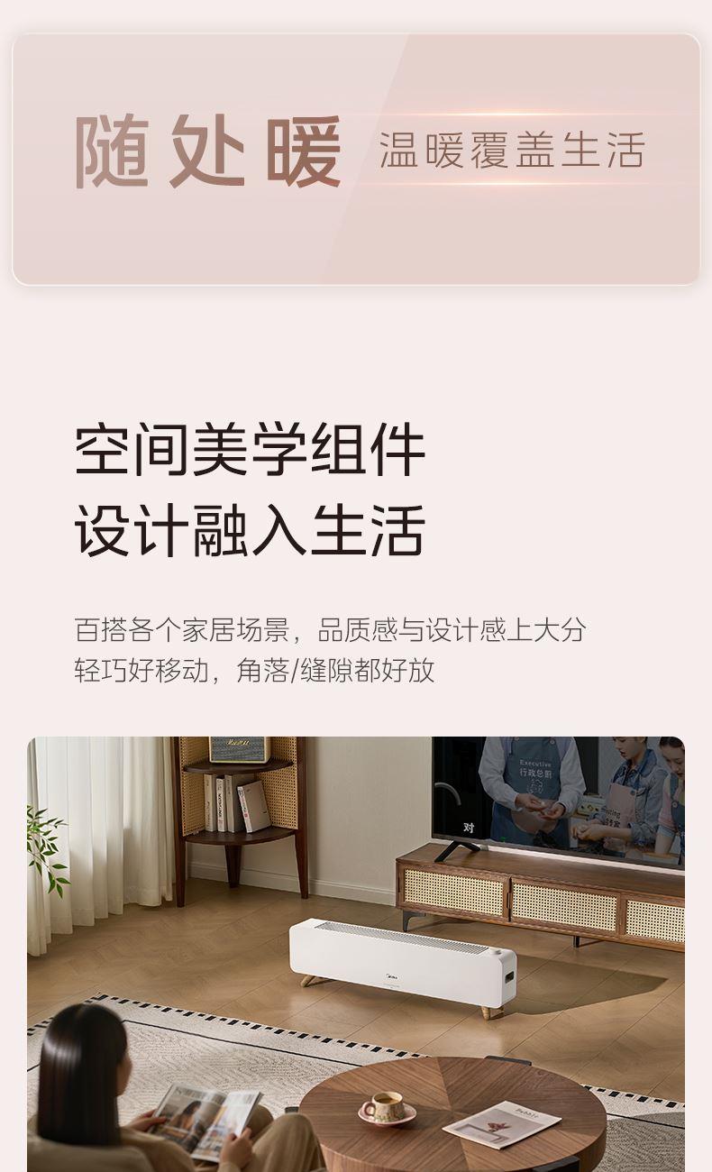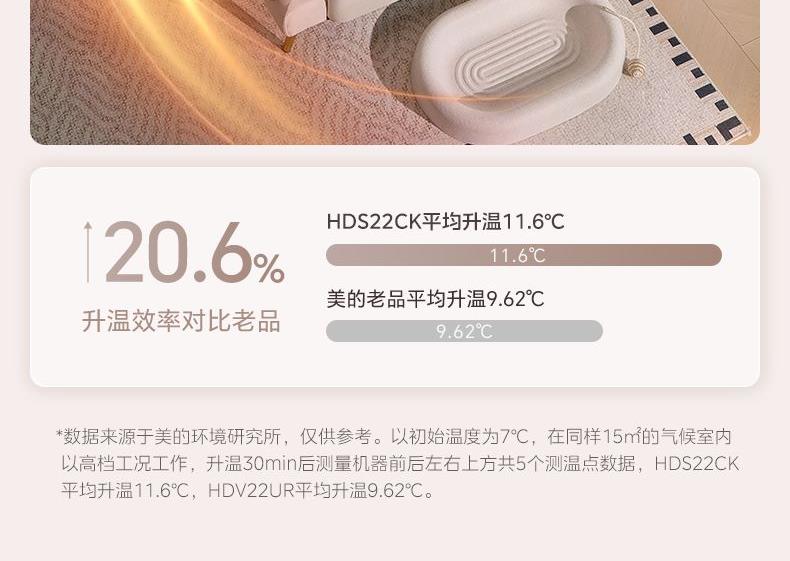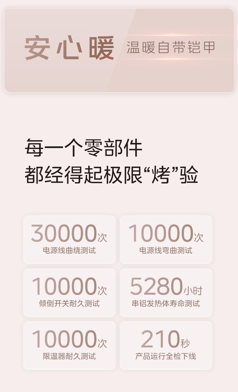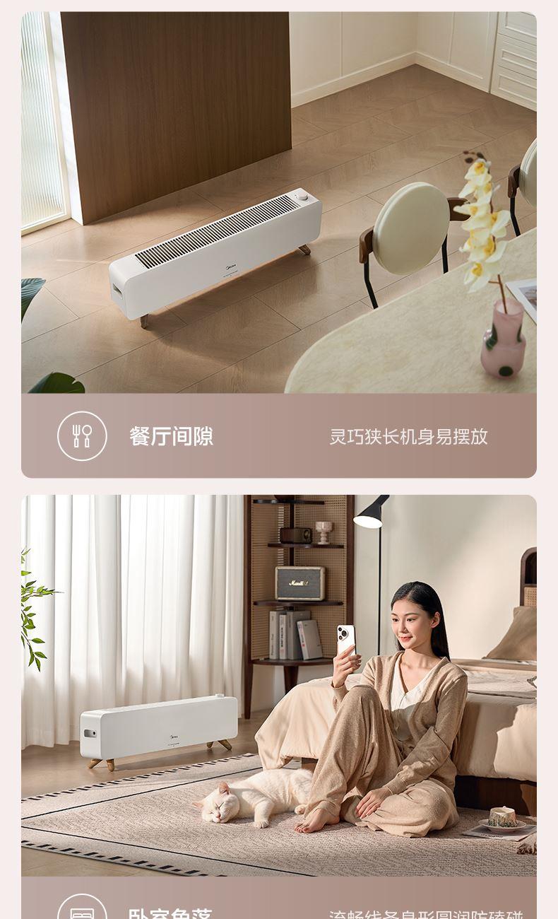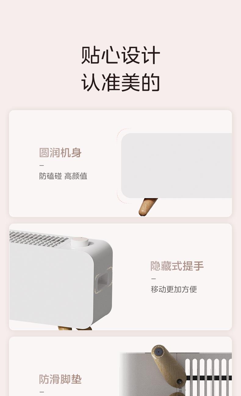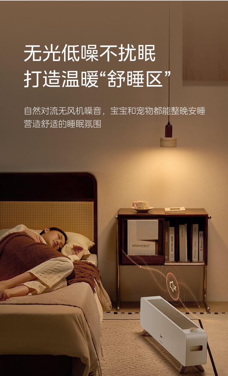 【温暖无需等待】 石墨烯速热“黑”科技,3秒快速释放热量。石墨烯热光波与人体同频,更容易被人体感知。温和舒适,如同冬日沐浴阳光一般; 加宽出暖口,充分散热,热量更足。出暖口加宽至100mm,对比老品增加22%; 【愉悦每个冬日场景】 卧室安静升温。无光低噪温和升温,搭配智能睡眠曲线,宝宝整晚安睡,不用担心踢被子着凉 快速烘衣暖衣。早上赖个床的时间,衣服暖了;晚上安静烘衣,第二天起床就有干衣服穿了 客厅均匀升温。2台一起用,一台放在窗边阻隔室外冷空气,一台放在客餐厅交界处,双向
