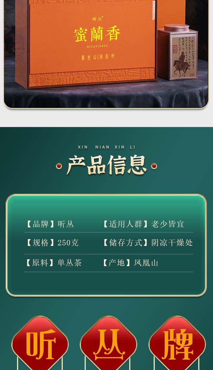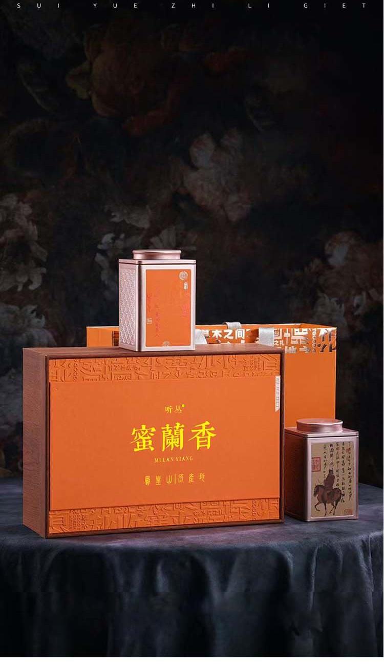 【茶名】:蜜兰香 【重量】:250g 【配件】:铁罐+礼盒+手提袋 【口味】:清香型 【产地】:广东·凤凰山 蜜兰香 特点 干茶外形紧结肥硕,色泽红褐或乌润,条索紧结较直,具有光泽。 香气浓郁,独具兰花香和甜美的蜜香,两者交织在一起,形成独特的“浓蜜幽兰”特韵。 汤色 汤色橙黄透亮,清澈明亮,表现出茶叶的高品质。 耐泡性!