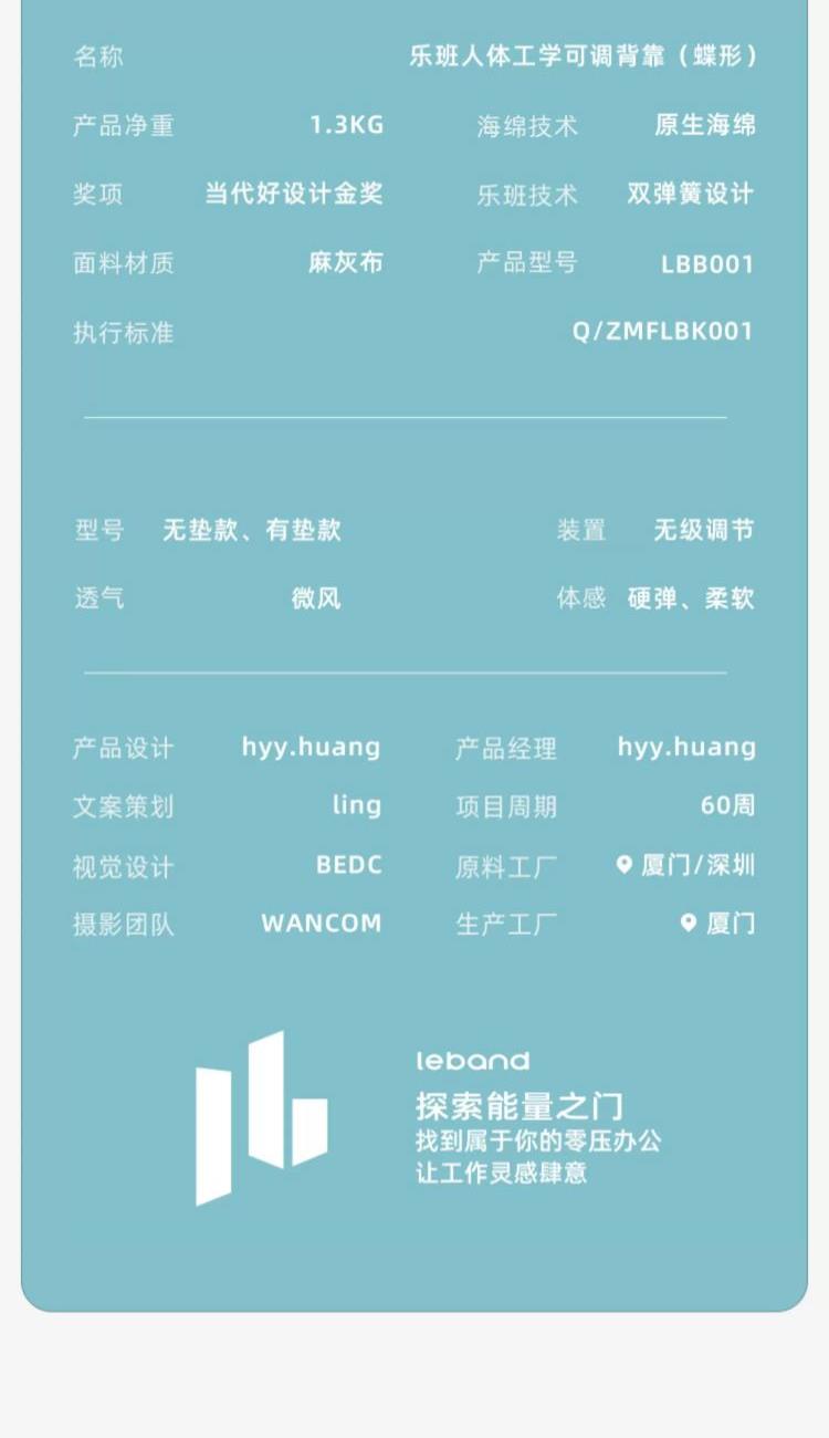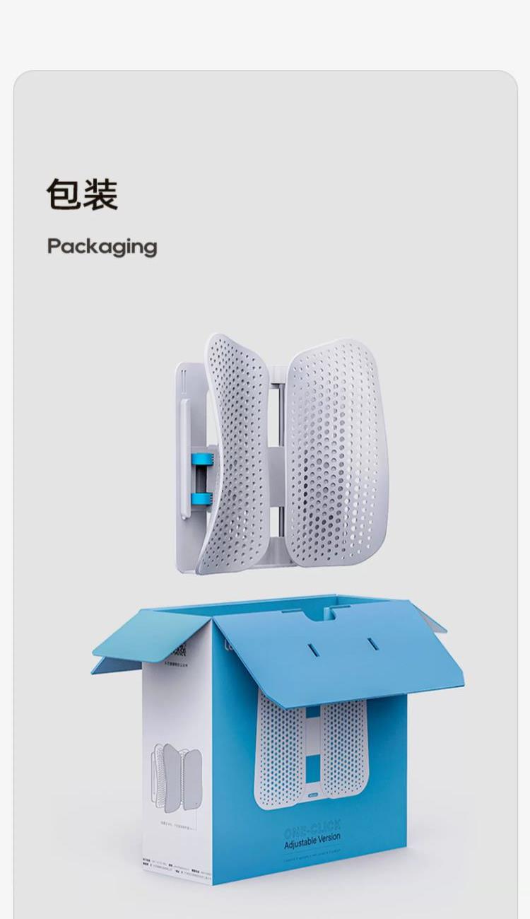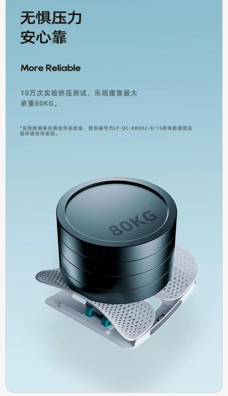 产品型号:LBB001-ALGY 产品规格:无垫款 产品净重:1.3kg 产品尺寸:390*370*140mm 可调高度:85mm 乐班技术:双弹簧设计 调节方式:卡扣 一键式升降两侧同时调节 执行标准:Q/ZMFL BK001-2021