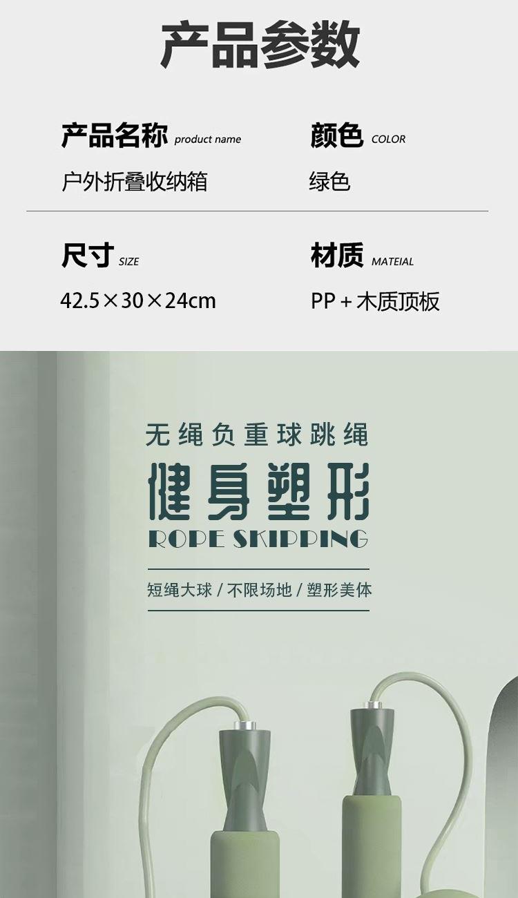 产品尺寸:露营灯:12*12*19cm/贵族野餐垫:200x150cm/收纳箱:42.5×30×24cm/圆球跳绳:3cm 产品材质:ABS +复合木板+600D牛津花瑶布+PE 套装组合:贵族野餐垫+露营灯+收纳箱+圆球跳绳 彩盒尺寸:455*185*320mm 外箱尺寸:58*47*66.5cm 贵族野餐垫:一体式收纳,携带方便、轻松出行,面料软硬适中,不沾沙草,防潮耐磨易清洗; 收纳箱:精选优质材料,搭配高强度复合木板,镂空提手设计,搬运省心省力,折叠设计,好收纳;一箱多用,户外居家储物均可; 露营灯:复古设计,户外一抹暖光,照亮氛围,享受精致露营; 圆球跳绳:不限场地室内也能跳,优质轴承丝滑耐用,高密度泡棉吸汗又防滑;