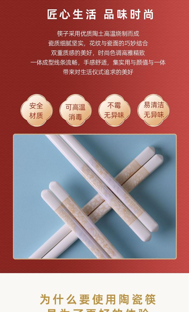 爱依瑞斯时光漫步陶瓷筷子10双装KZ-10A