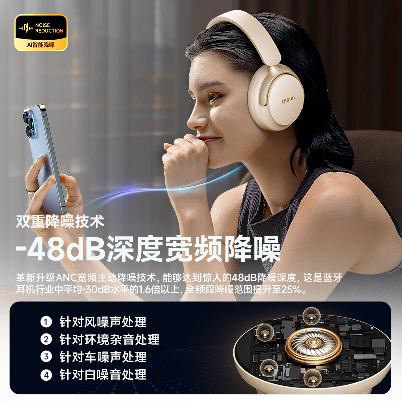 2、4麦阵列先进混馈降噪技术, 降噪深度达38DB