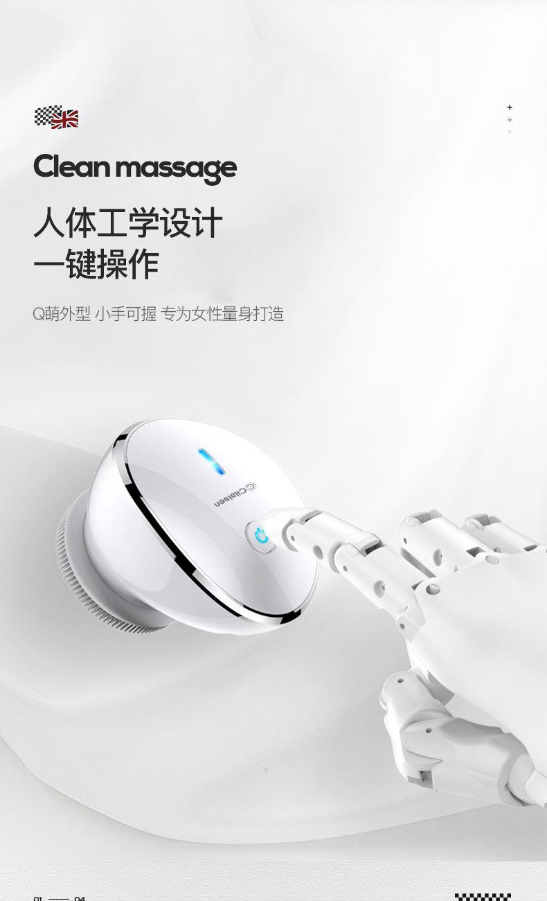 1、清洁模式:硅胶刷头+高频振动,根据不同的肌肤需求,可调节按摩清洁力度