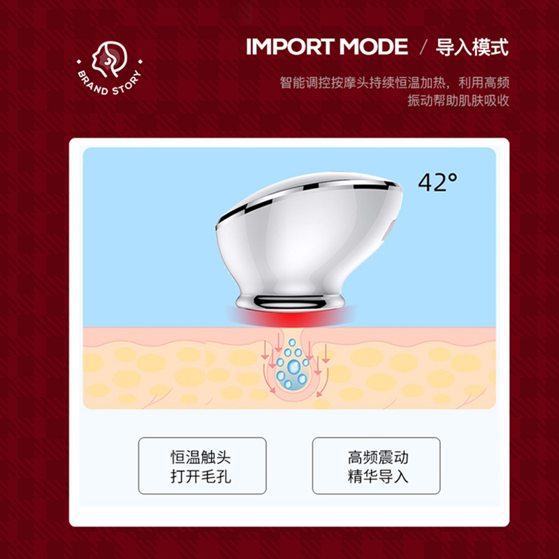 2、导入模式:恒温触头打开毛孔,高频震动精华导入