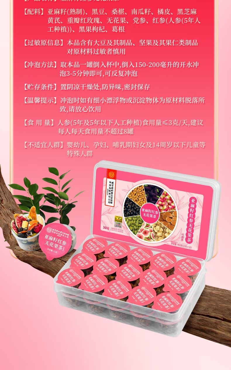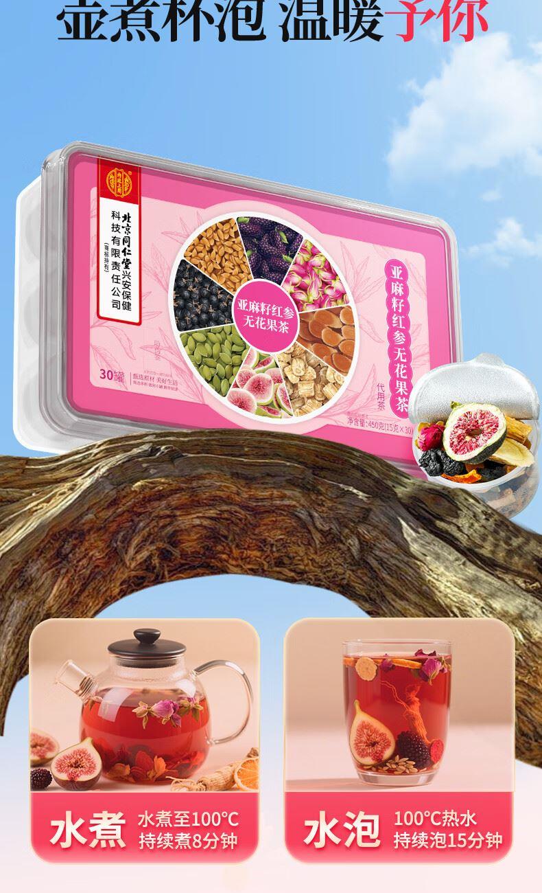 北京同仁堂内廷上用亚麻籽红参无花果茶450克(15克×30)