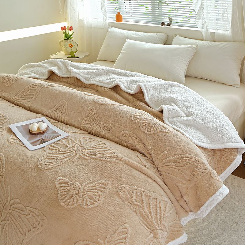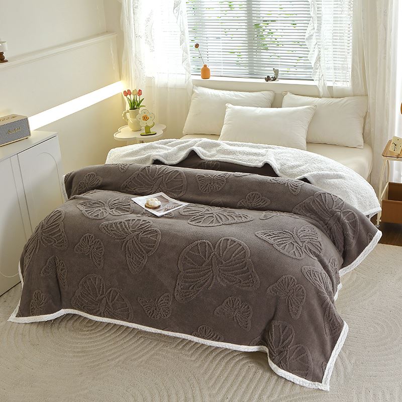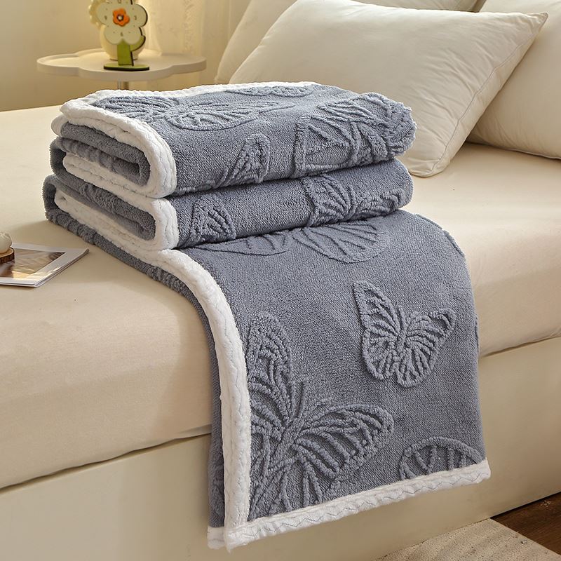 一款多用:午睡毯、车用毯、沙发毯、披肩、床用被单等等,时刻感知你的温度,给你加倍温暖。面料中植入导电丝,告别静电烦恼。面料采用活性印染技术,安全不褪色,有颜值更舒适. 面料:A版:舒棉绒 B版: 羊羔绒 规格:150*200cm