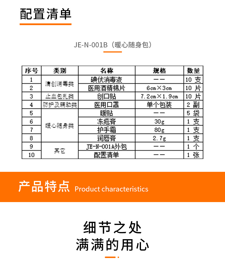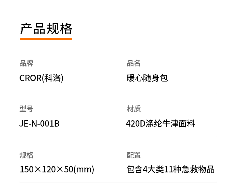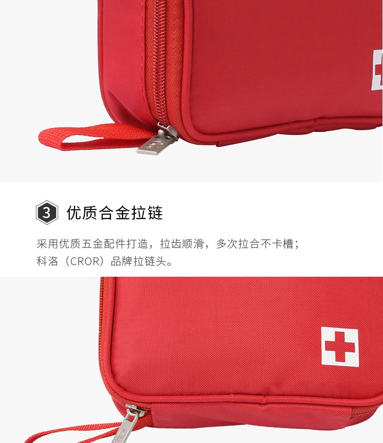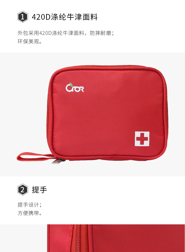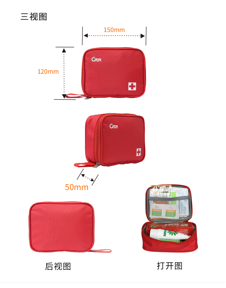 产品材质:420D 牛津布 产品规格:160*50*130mm 产品颜色:红色 产品配置:含5大类10种急救用品