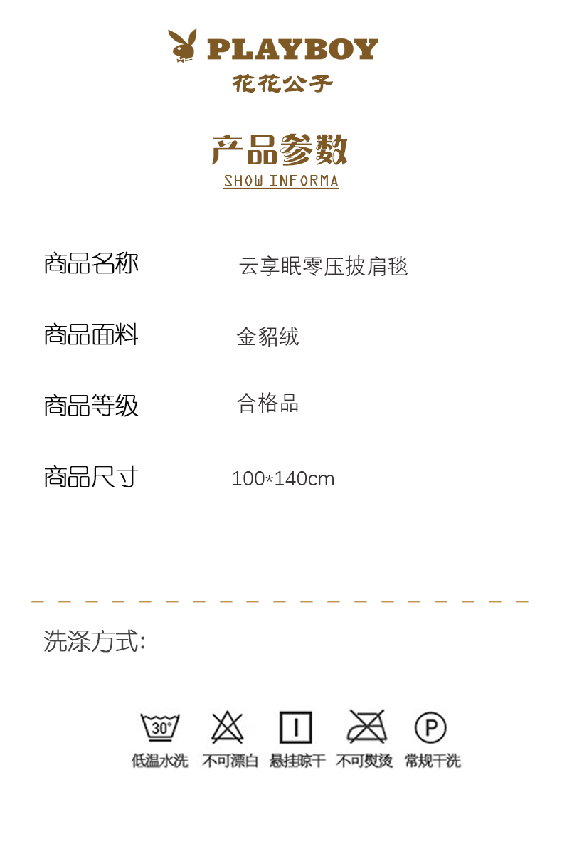 规格:100*140cm 面料:金貂绒 克重:400g 执行标准:FZ/T61002-2019 安全类别:GB18401-2010 B类 1.加厚金貂绒面料,绒毛细腻柔软,贴身更保暖;绒毛紧密,不易掉毛,可机洗易打理; 2.这是一款可以做衣服的毯子,采用柔软保暖的婴儿绒面料。容易被忽略的上半身,手臂,肩部,颈部,背部,创意空调披肩小毯子,它可系,可披,易收纳,营造的专属你我的温暖港湾。