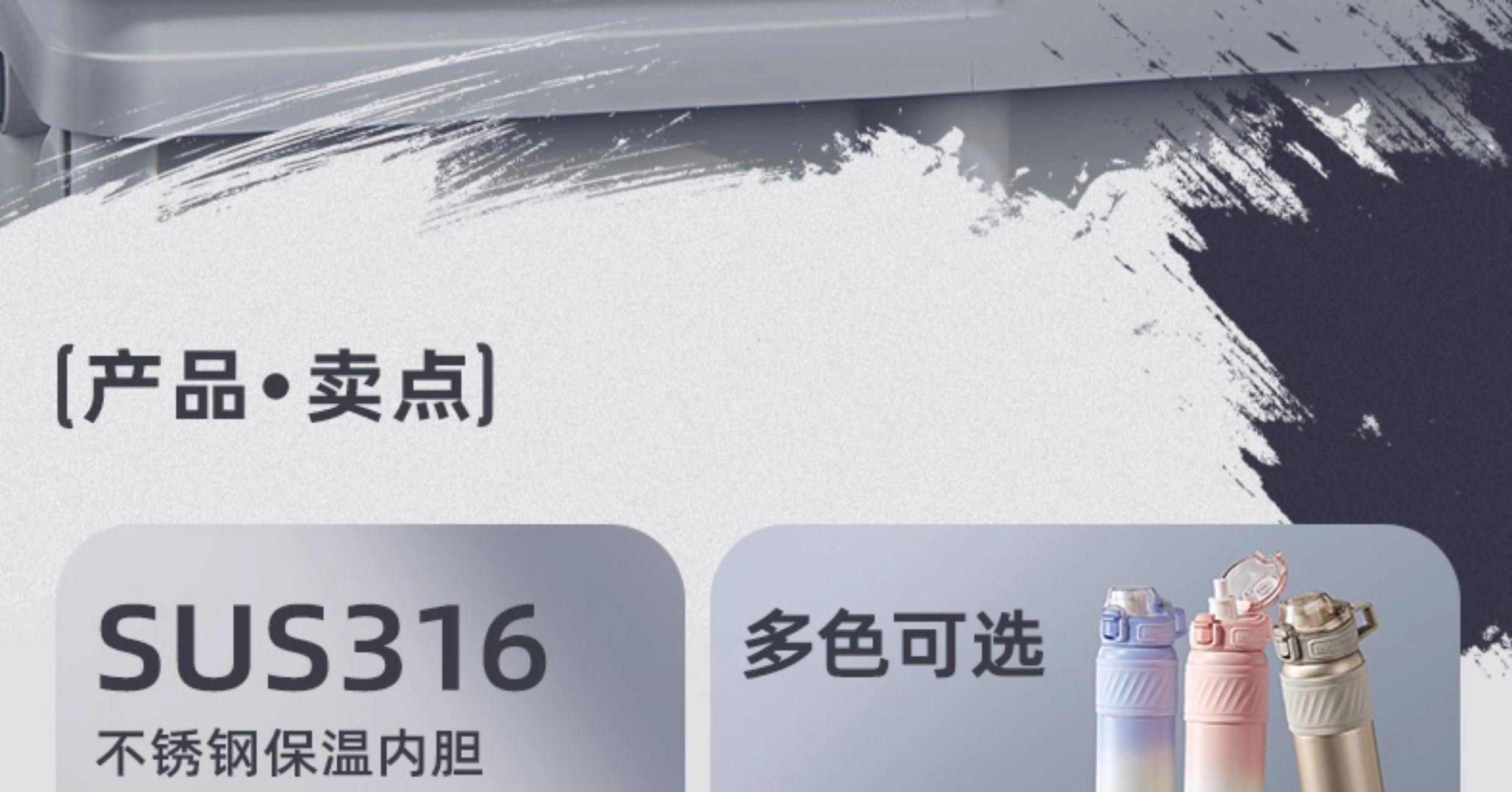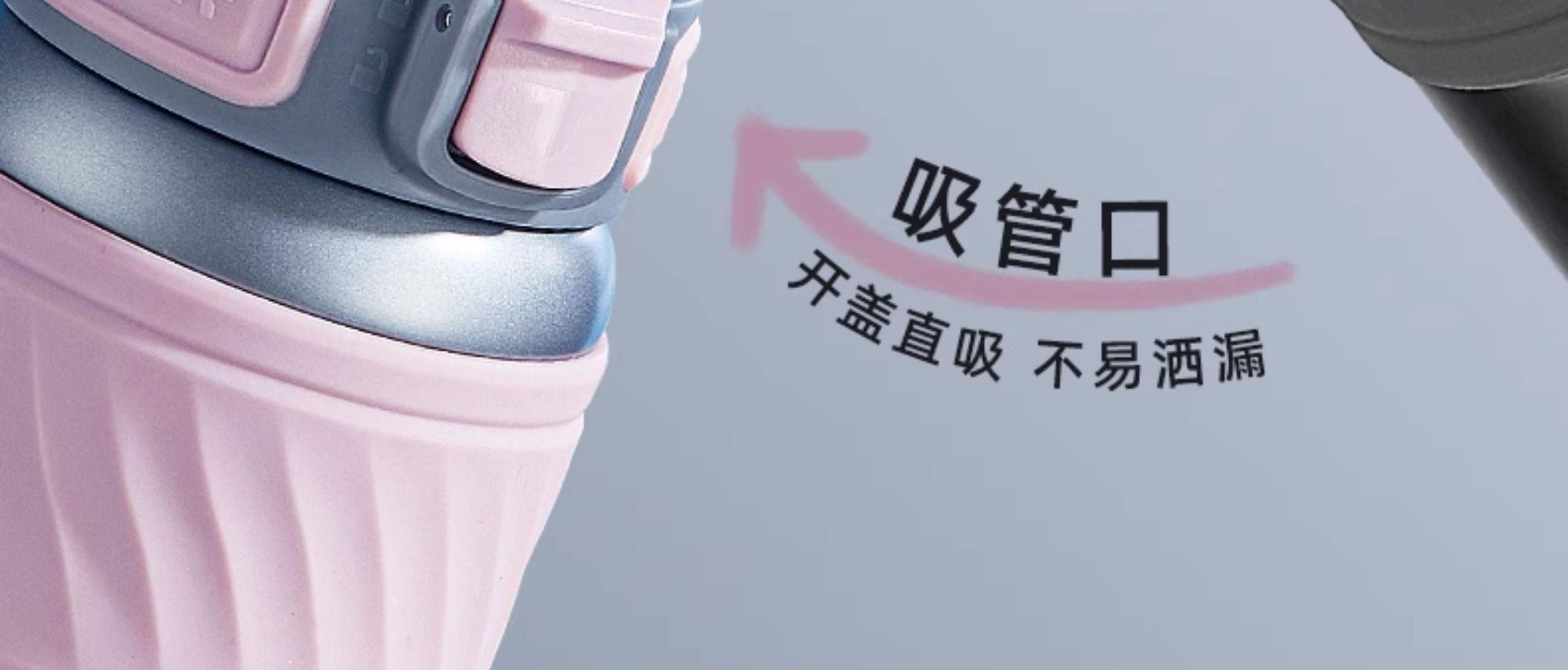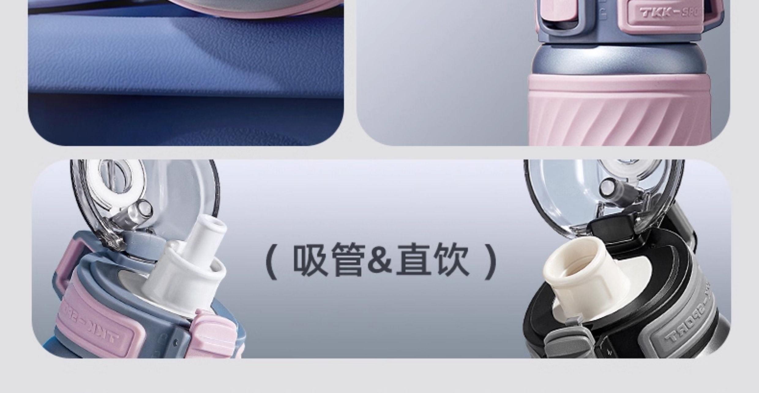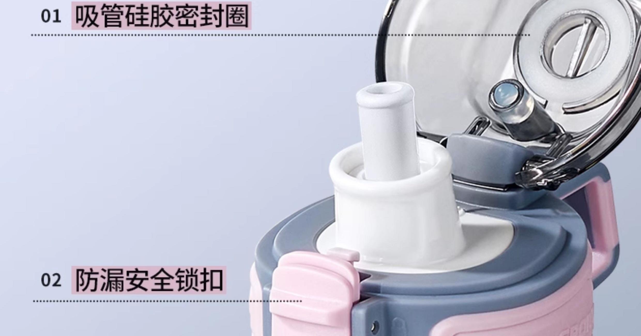 杯身材质:316不锈钢 杯盖材质:PP+TPE 杯套材质:硅胶 商品净重:349g 1、SUS 316不锈钢内胆[长效锁温500ml 一杯双饮一键开启 2、趣味双饮喝法<1+1>直饮+吸管 想怎么喝,就怎么喝 直饮口大口吨吨 一键补水 吸管口7羡直吸 不易酒漏 3、安全弹跳盖一键开启 安全锁扣 单手开合 一键速补水 向下推 开锁 向上推 锁住