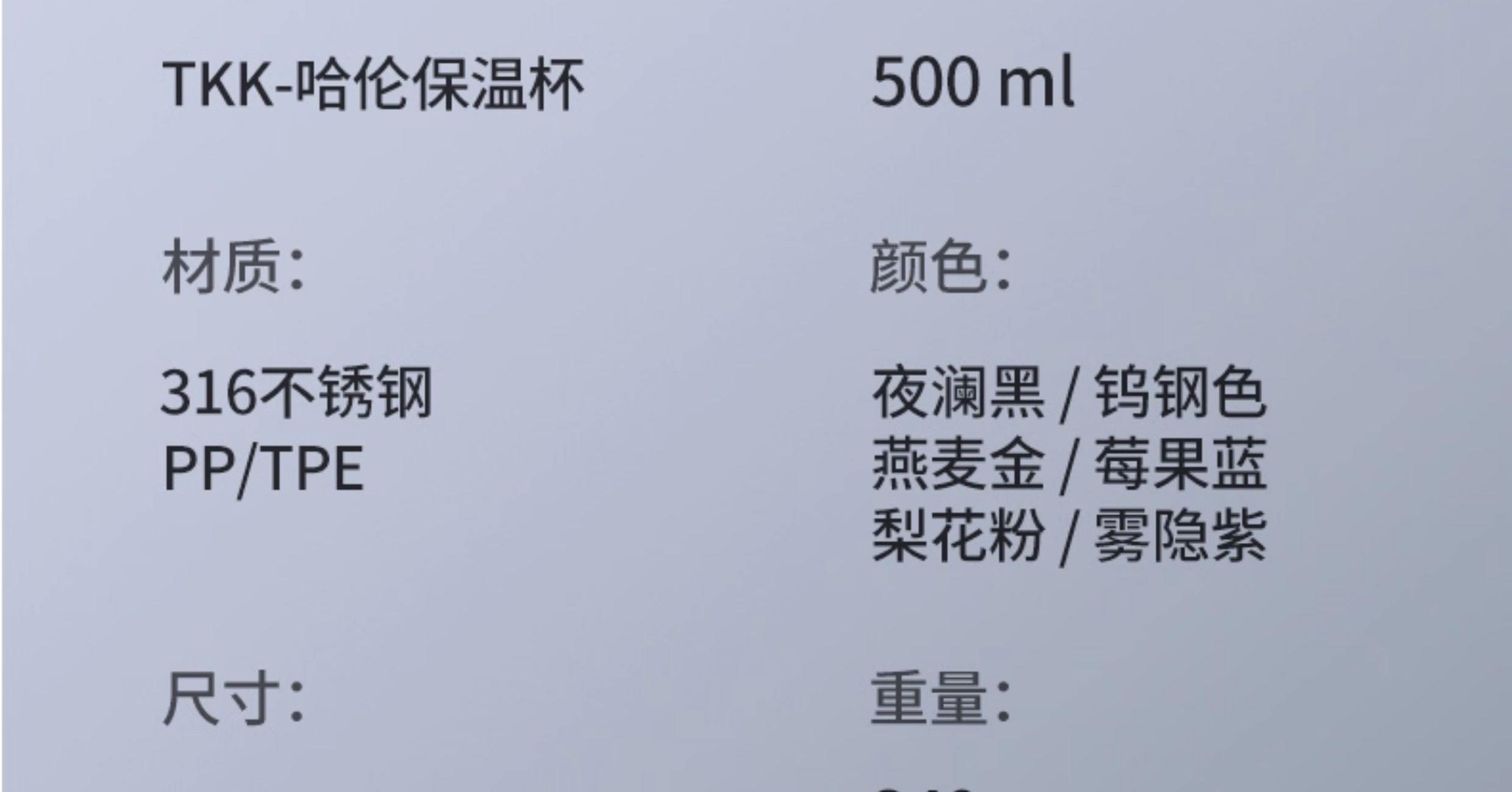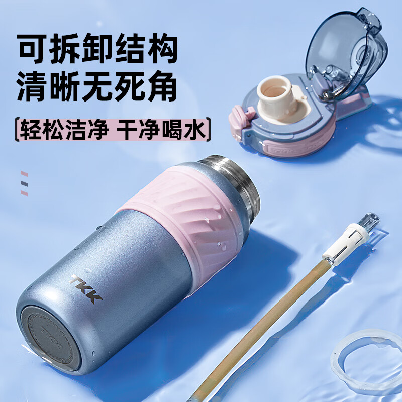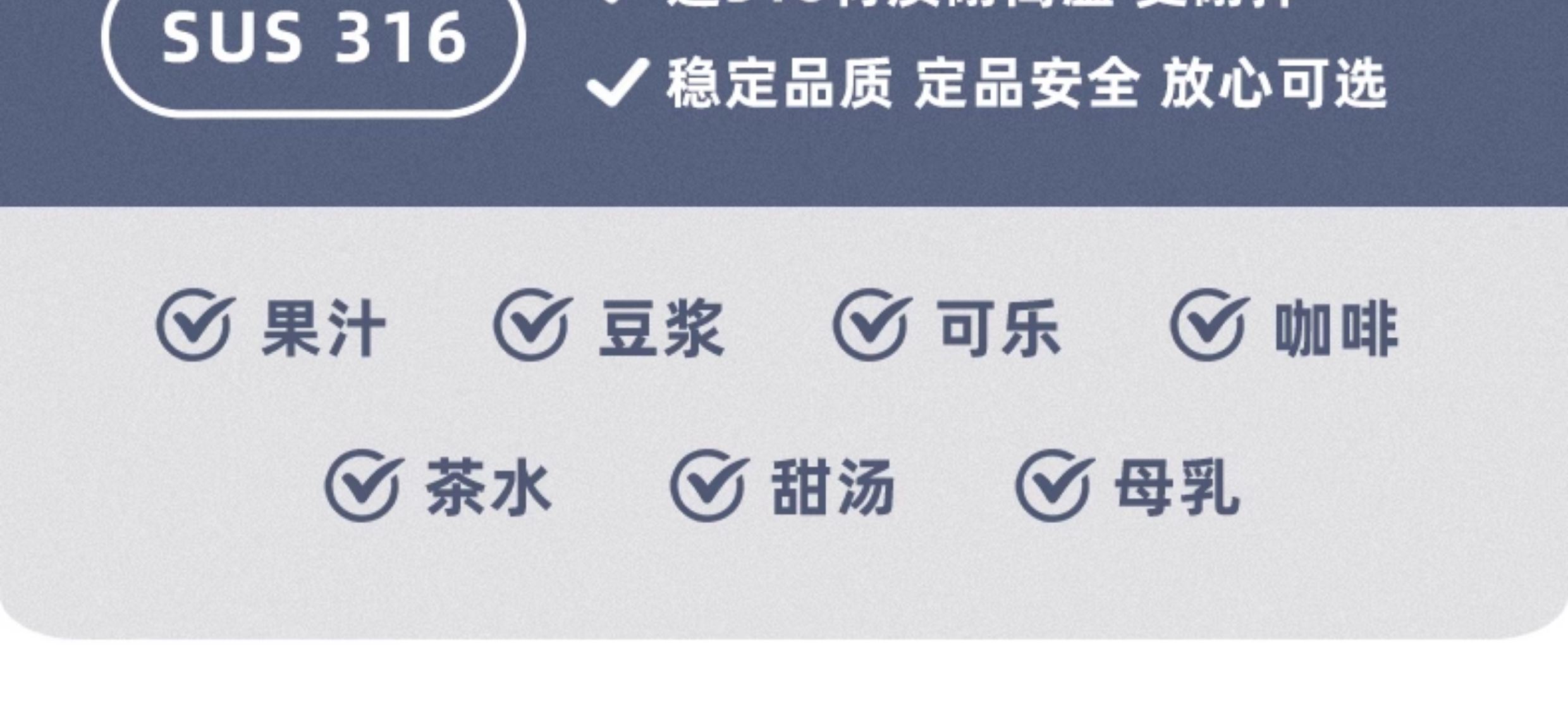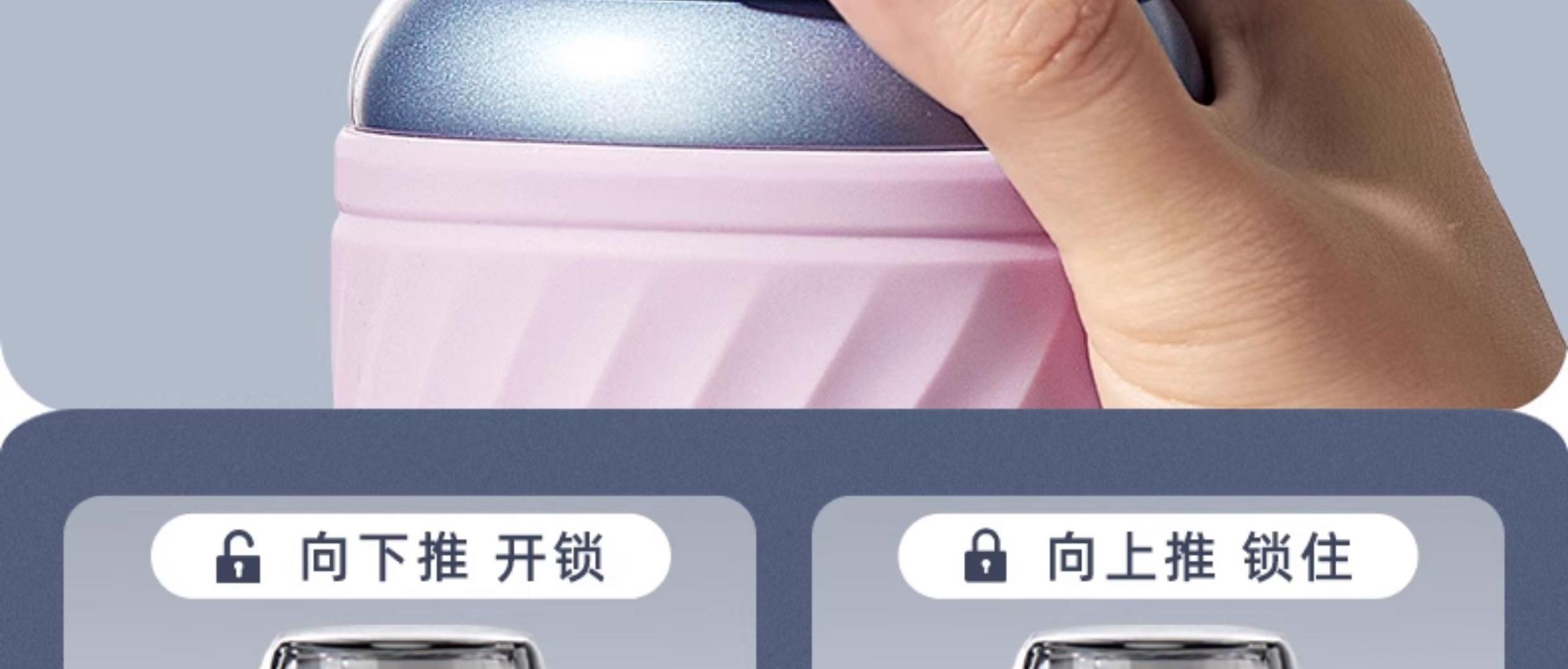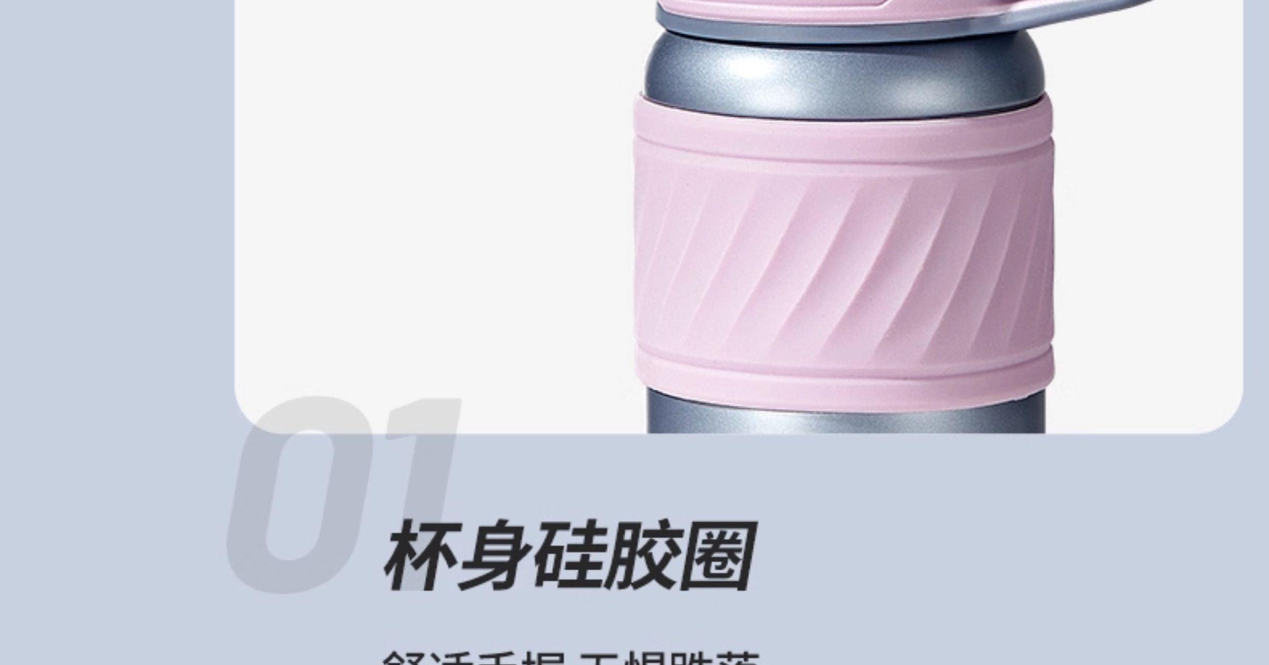 杯身材质:316不锈钢 杯盖材质:PP+TPE 杯套材质:硅胶 商品净重:349g 1、SUS 316不锈钢内胆[长效锁温500ml 一杯双饮一键开启 2、趣味双饮喝法<1+1>直饮+吸管 想怎么喝,就怎么喝 直饮口大口吨吨 一键补水 吸管口7羡直吸 不易酒漏 3、安全弹跳盖一键开启 安全锁扣 单手开合 一键速补水 向下推 开锁 向上推 锁住