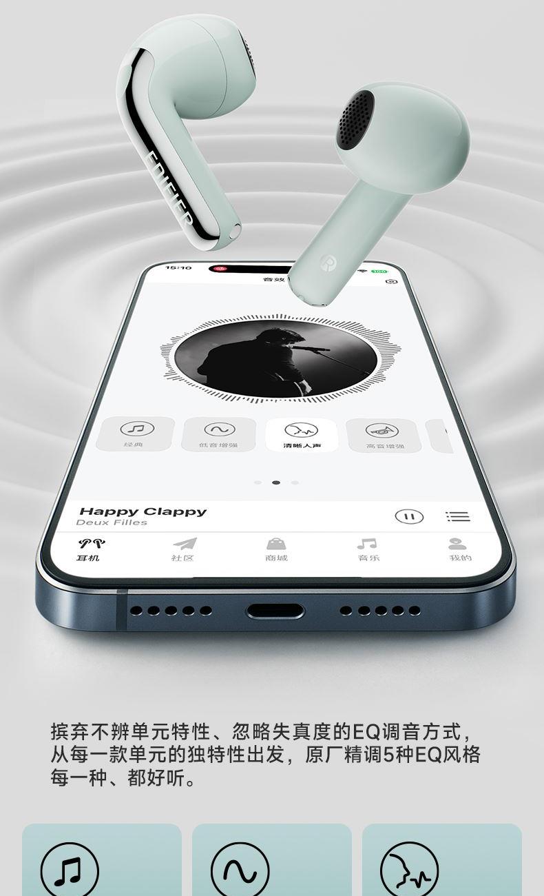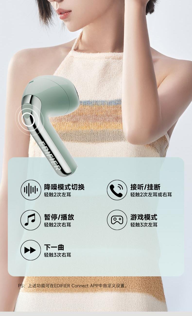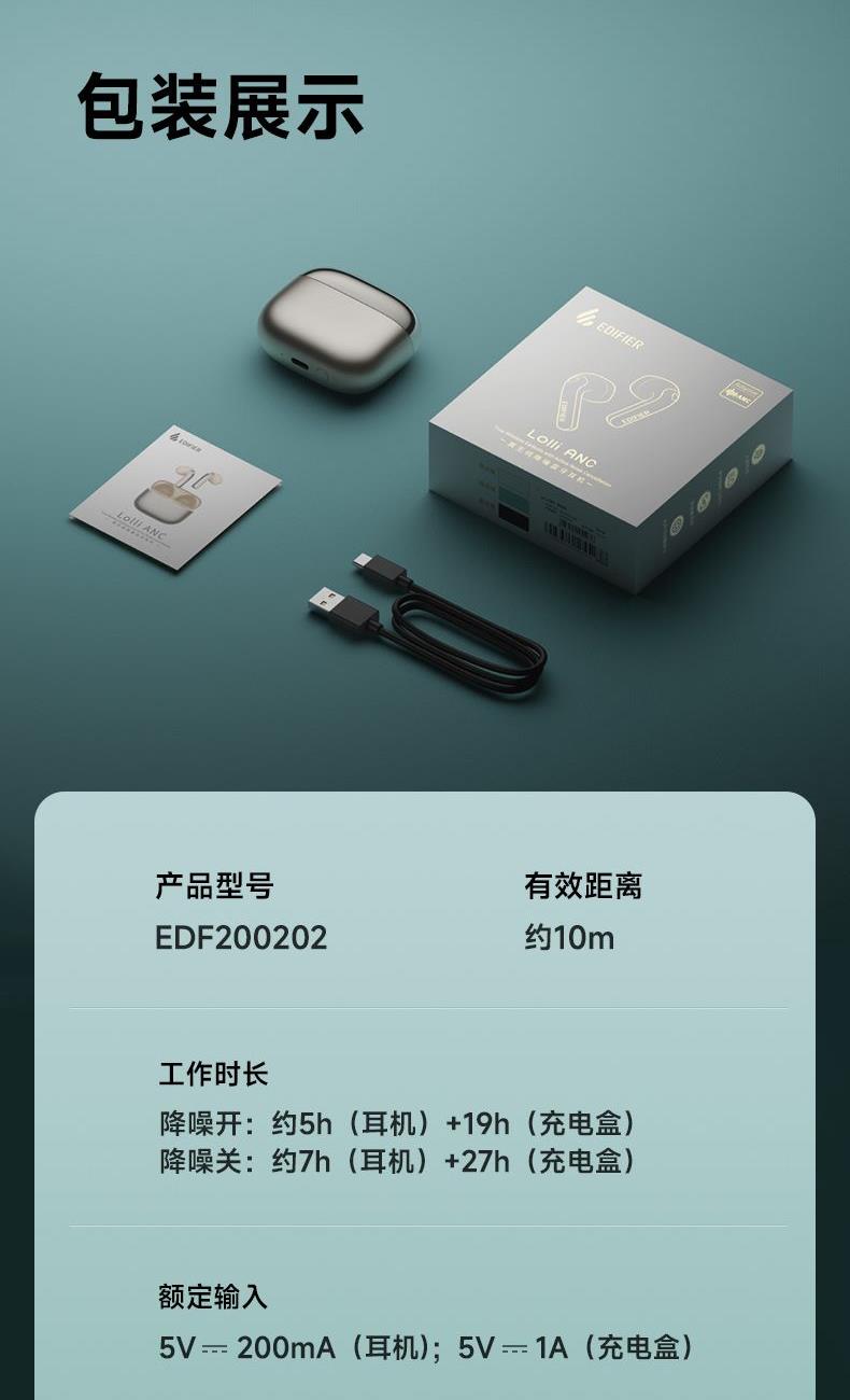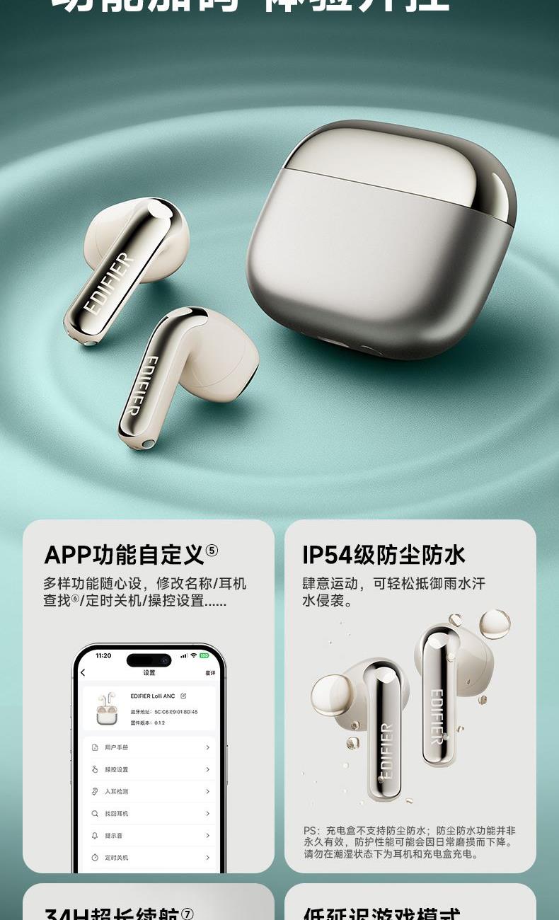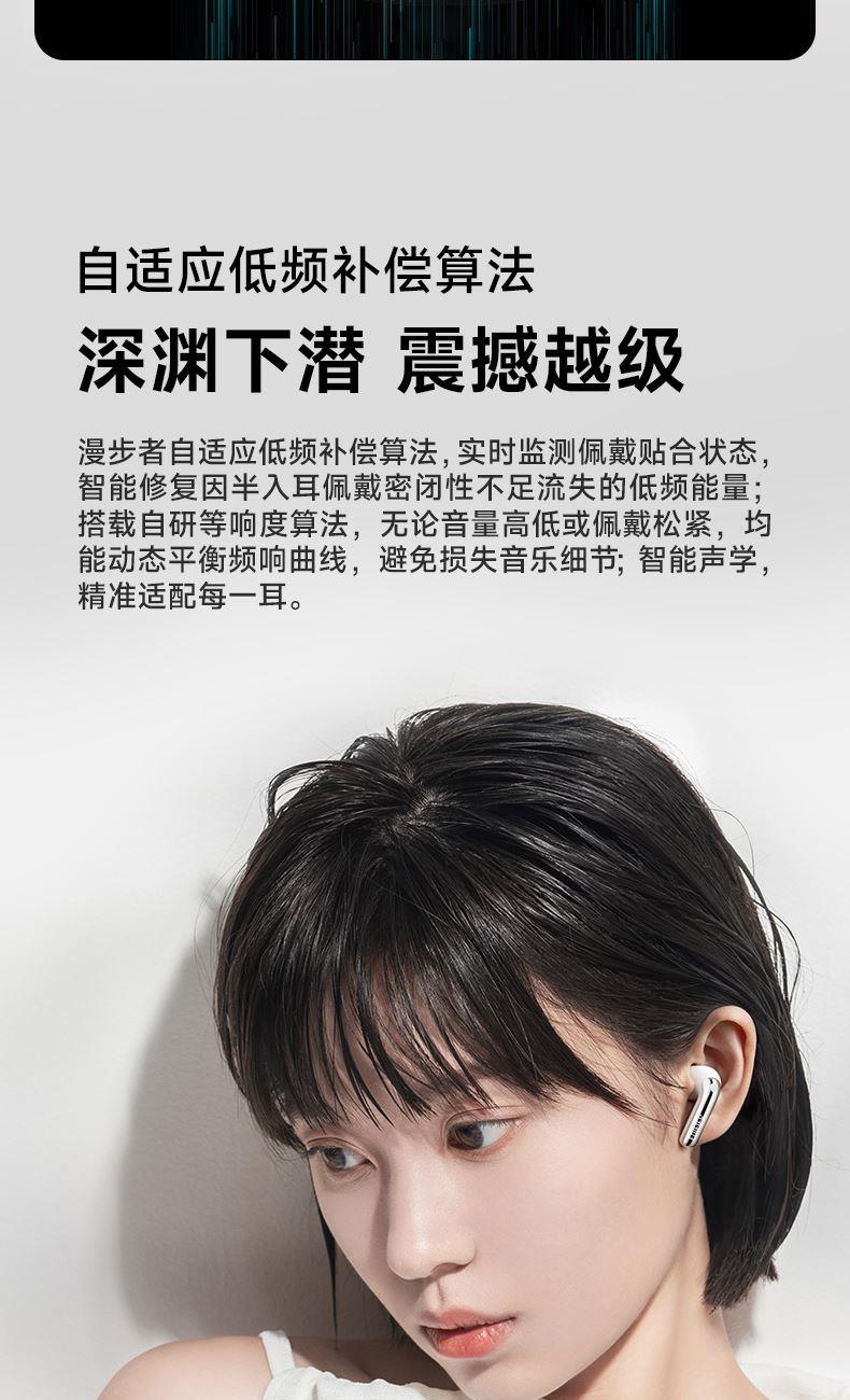 自适应主动降噪2.0,半入耳舒适佩戴4.0 自适应低频补偿算法 全新13mm三复合强磁单元 2+2Mic ENC通话降噪,经典[5原声]调音 支持双设备连接,APP同声传译