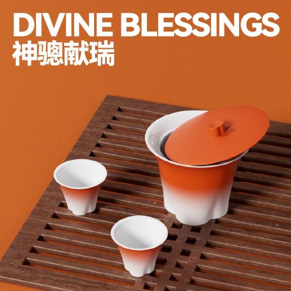 精装礼盒&手提袋 x1、如意满棠·茶具套装(一壶两杯一茶巾)x1