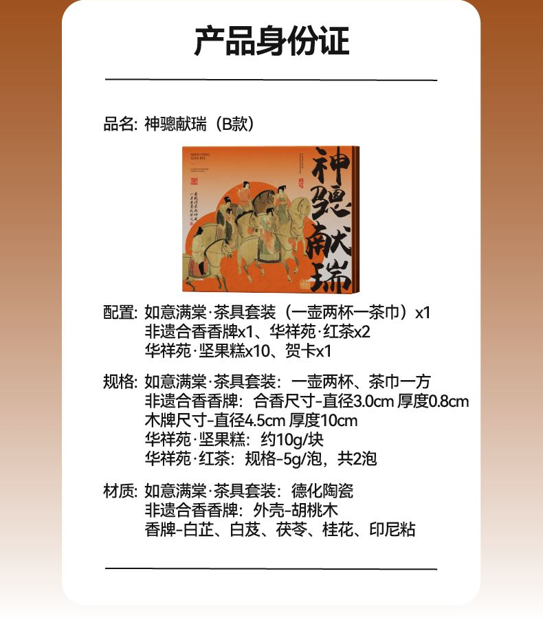 非遗合香香牌x1、华祥苑·红茶x2、华祥苑·坚果糕x1、贺卡x1
